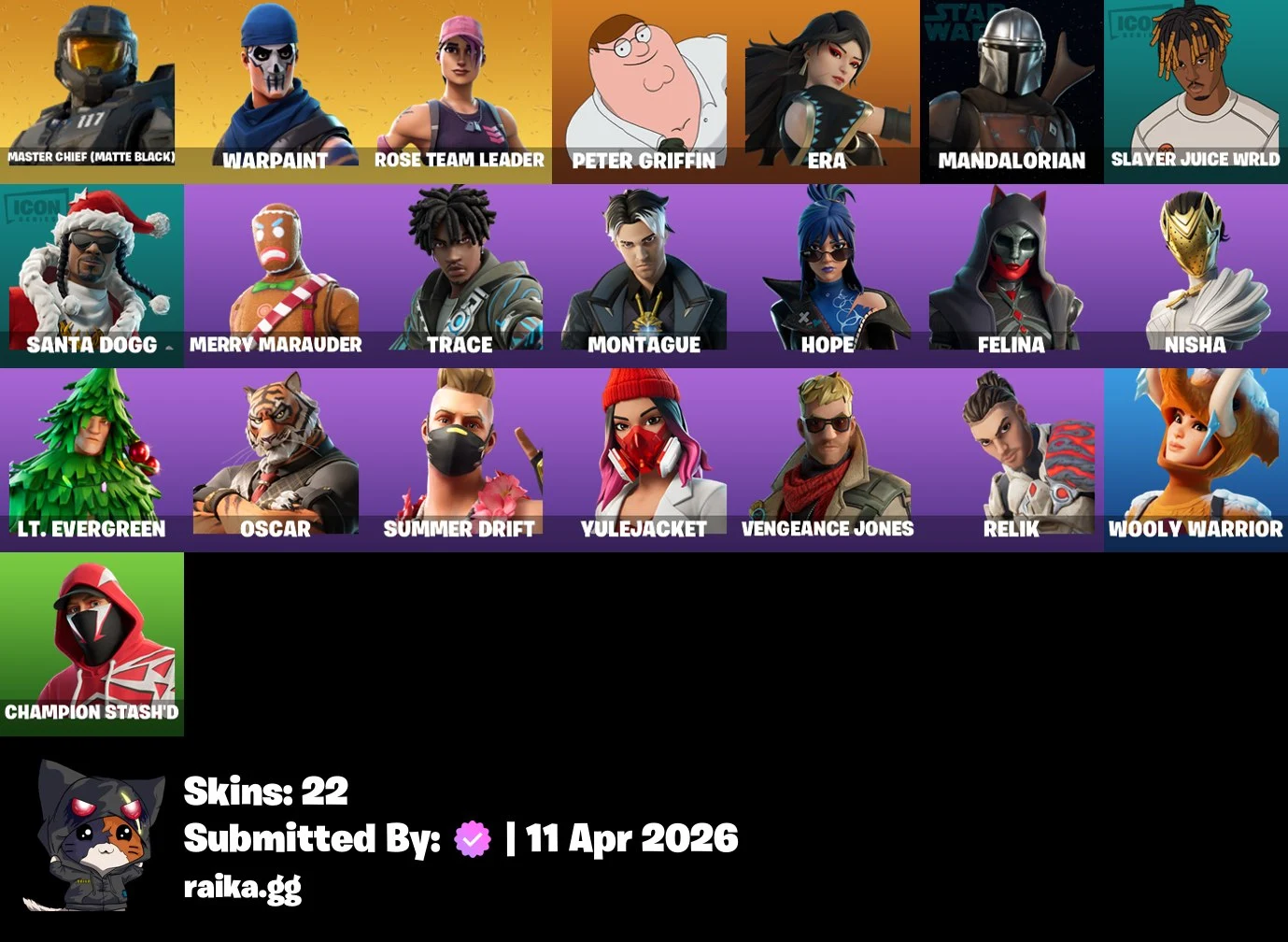 [PC/PSN/XBOX] 22 skins | OG STW | Master Chief (Matte Black) | Peter Griffin | Era | Mandalorian | Slayer Juice WRLD | Santa Dogg | Merry Marauder | T