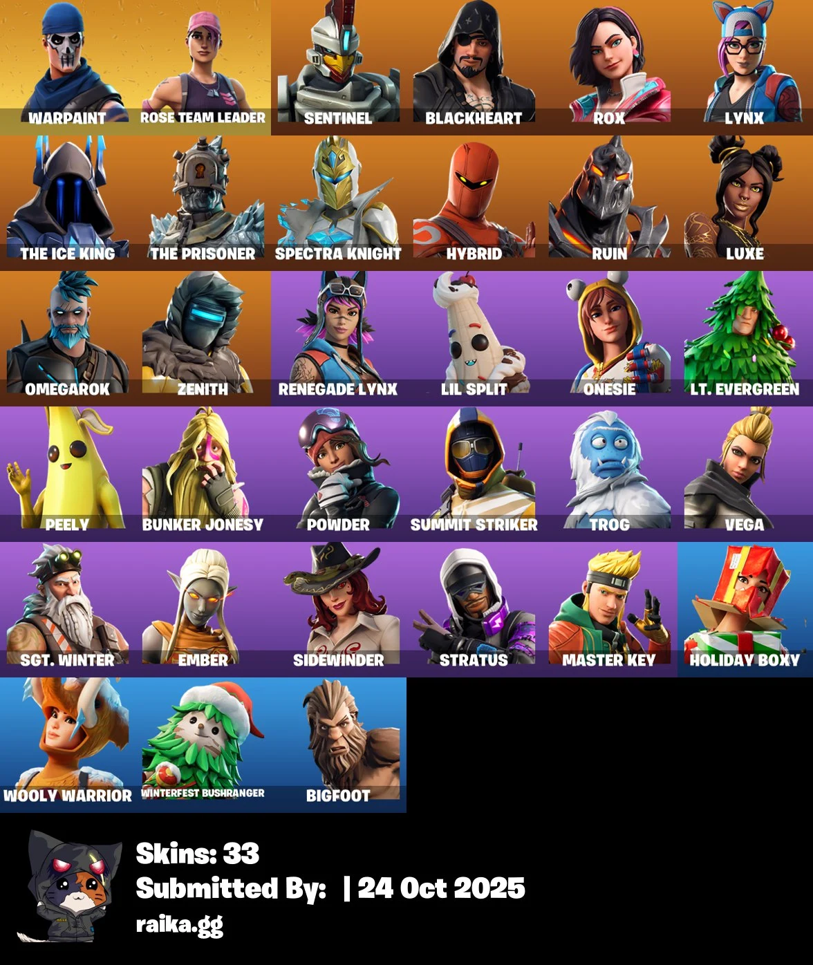 [PC/PSN/XBOX] 33 skins | OG STW | Sentinel | Blackheart | Rox | Lynx | The Ice King | The Prisoner | Spectra Knight | Hybrid | Ruin | Luxe | Omegarok