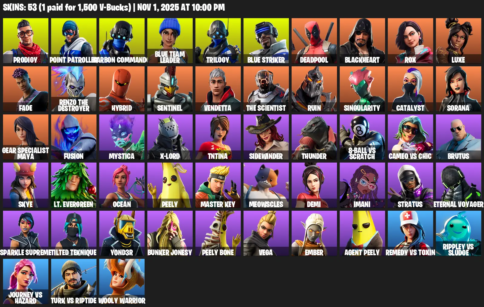 [PC/PSN/XBOX] | 53 skins | Prodigy | Point Patroller | Carbon Commando | Blue Team Leader | Trilogy | Blue Striker | Deadpool | #VZZ5953 | #MBFN
