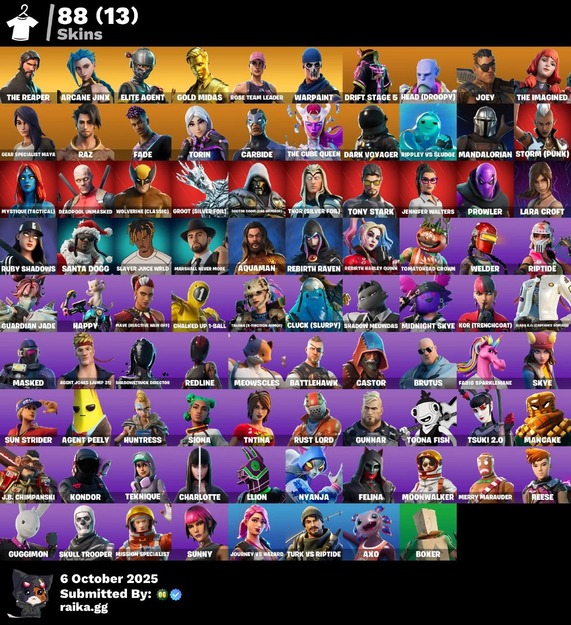 🔥[PC/PSN/XBOX] 88 skins | OG STW | The Reaper | Mako | Arcane Jinx | Take The L | Elite Agent | Lara Croft | Tony Stark Zka708