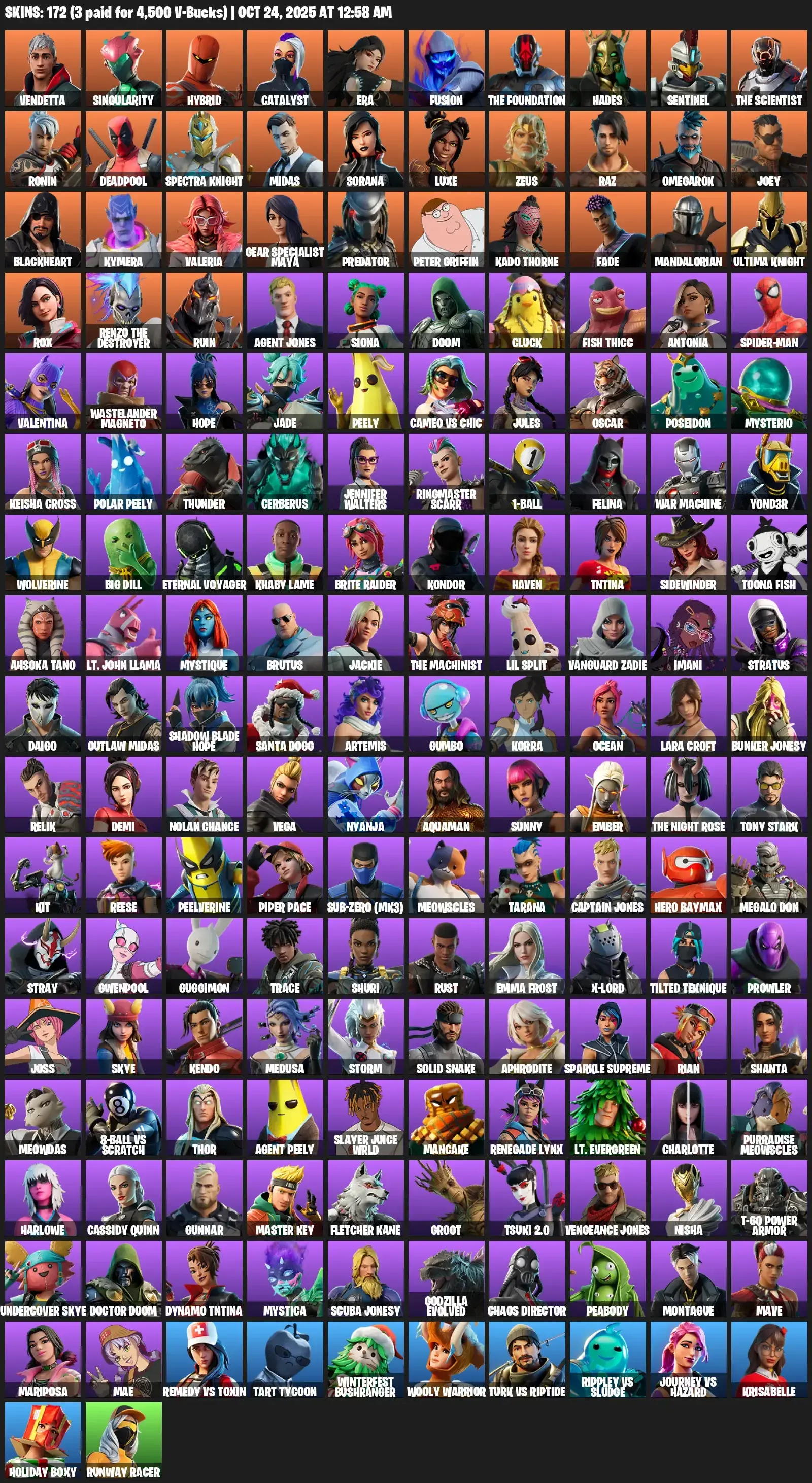 [PC/PSN/XBOX] | 172 skins | 1150 V-bucks | Lara Croft | Reaper Axe | Vendetta | Singularity | Hybrid | Catalyst | Era | Fusion | #MPV5024 | #MBFN