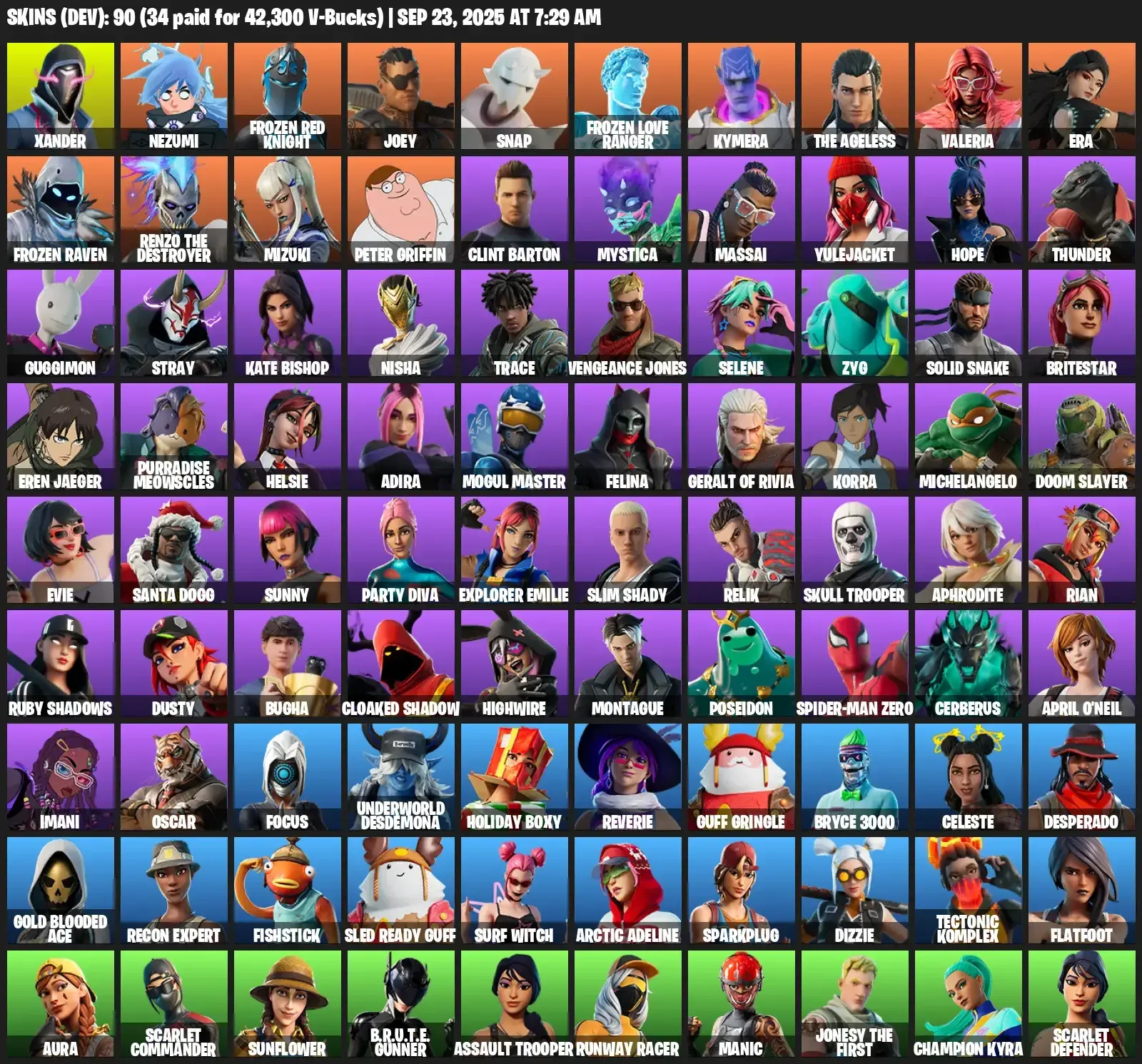[PC/PSN/XBOX] | 90 skins | Xander | Nezumi | Frozen Red Knight | Joey | Snap | Frozen Love Ranger | Kymera | The Ageless | Valeria | #HOP2174 | #MBFN