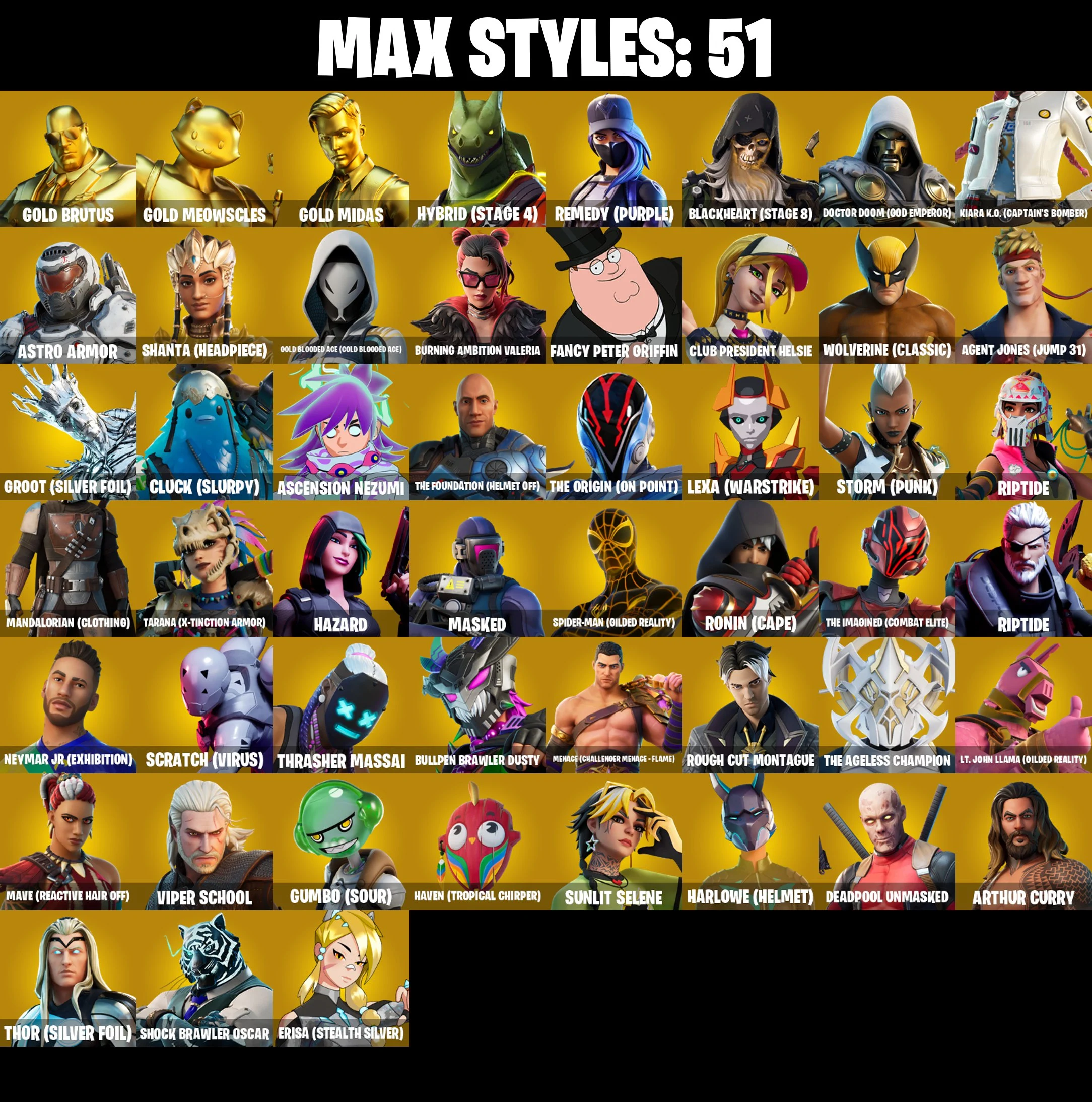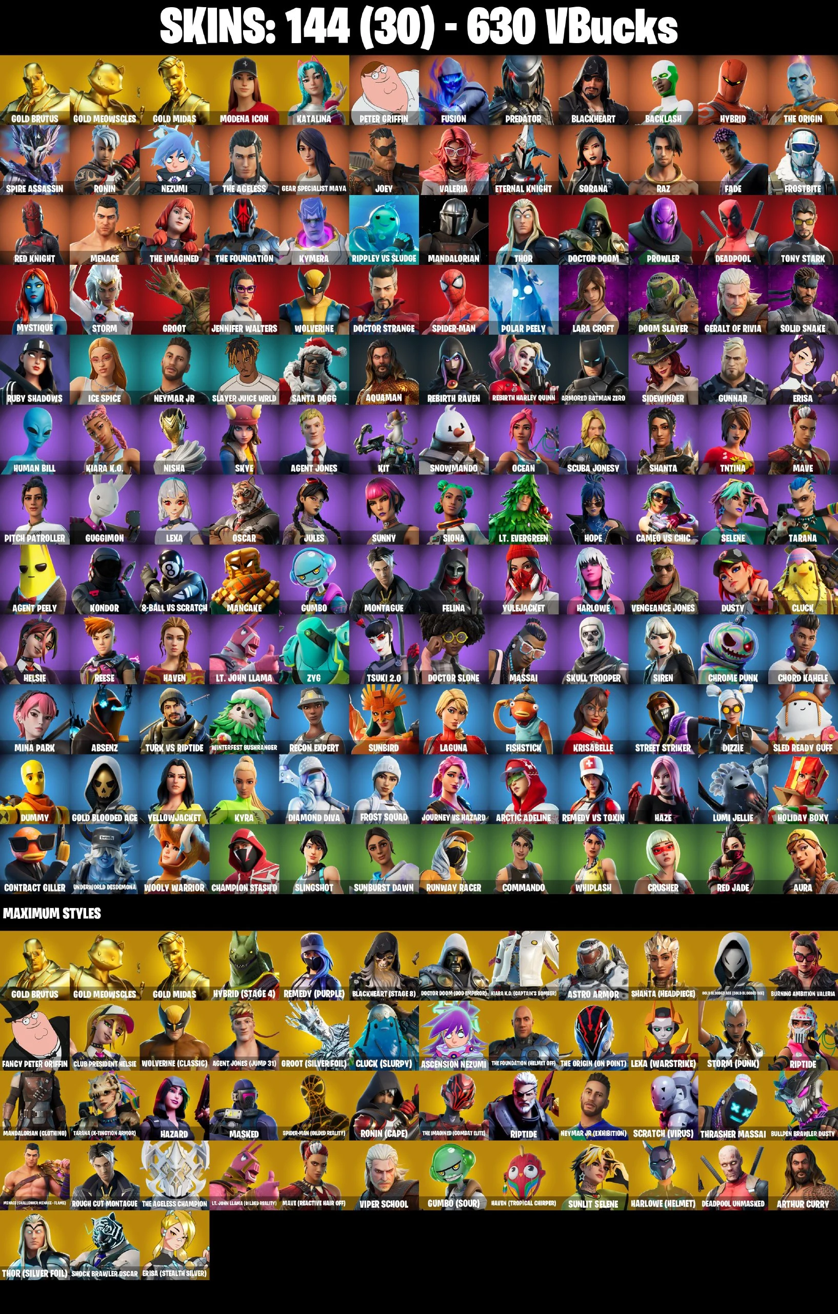 β [PC/PSN/XBOX/NINTENDO/MOBILE] 144 SKINS | MODENA ICON | GOLD MIDAS | GOLD BRUTUS | GOLD MEOWSCLES | BACKLASH | ETERNAL KNIGHT | FROSTBITE | RED KNIGHT | MANDALORIAN | DEADPOOL | TONY STARK | MYSTIQUE | SPIDER-MAN | WOLVERINE | 630 VBUCKS | EMAIL
