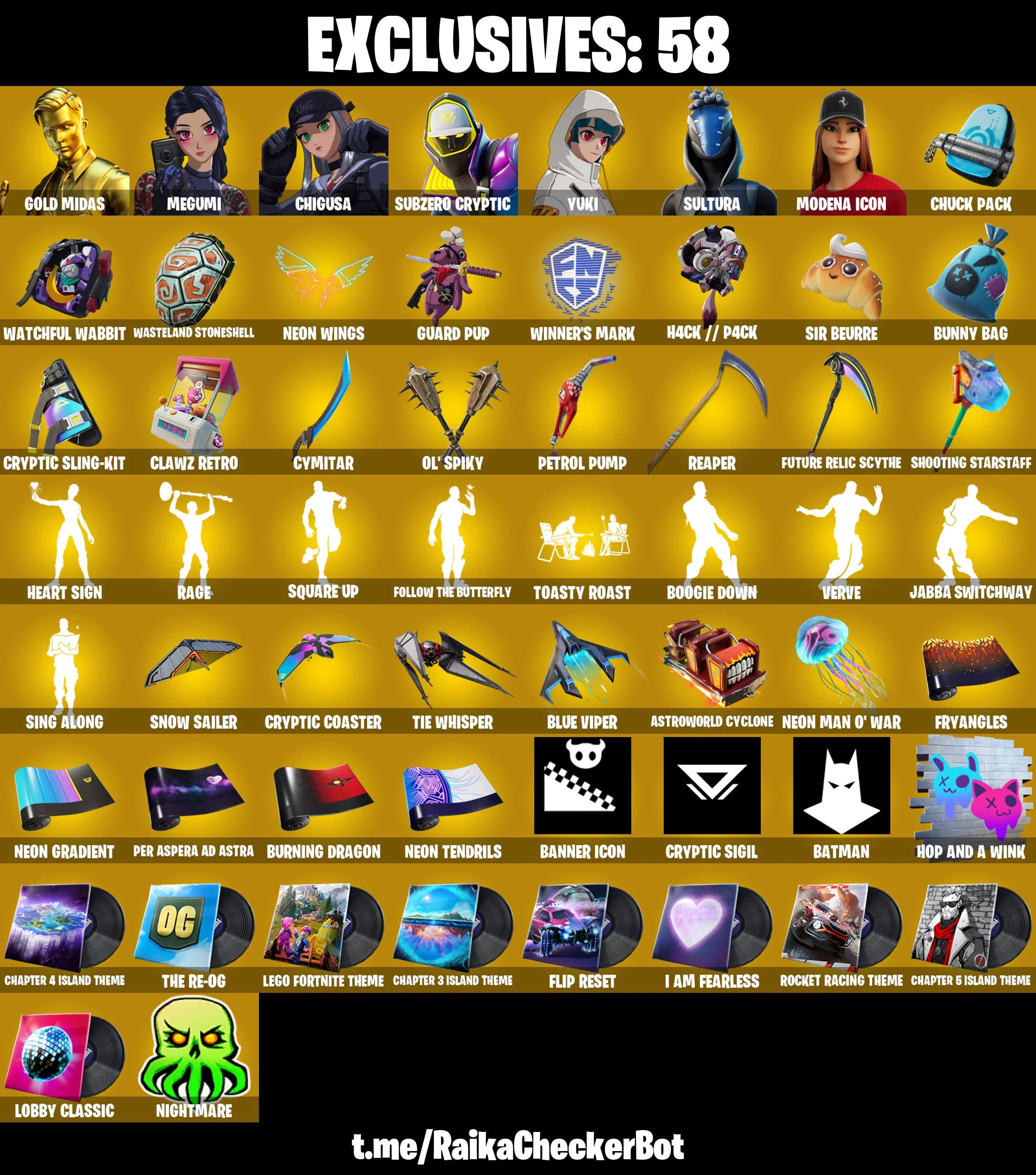⭐[PC/PSN/XBOX/NINTENDO/MOBILE] 168 SKINS | GOLD MIDAS | SUBZERO CRYPTIC | SULTURA | MODENA ICON | ASCENSION NEZUMI | BATTLE-TESTED | THE AGELESS CHAMPION | RONIN (CAPE) | ICONIC ERA | MAGMATIC MIZUKI | HEAD (DROOPY) |