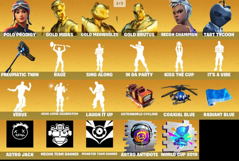 [PC\XBOX] 234 skins | Polo Prodigy | Gold Midas | Gold Meowscles | Gold Brutus | Recon Champion | Tart Tycoon | Joey | Peter Griffin | The Cube Queen | 2550 VB