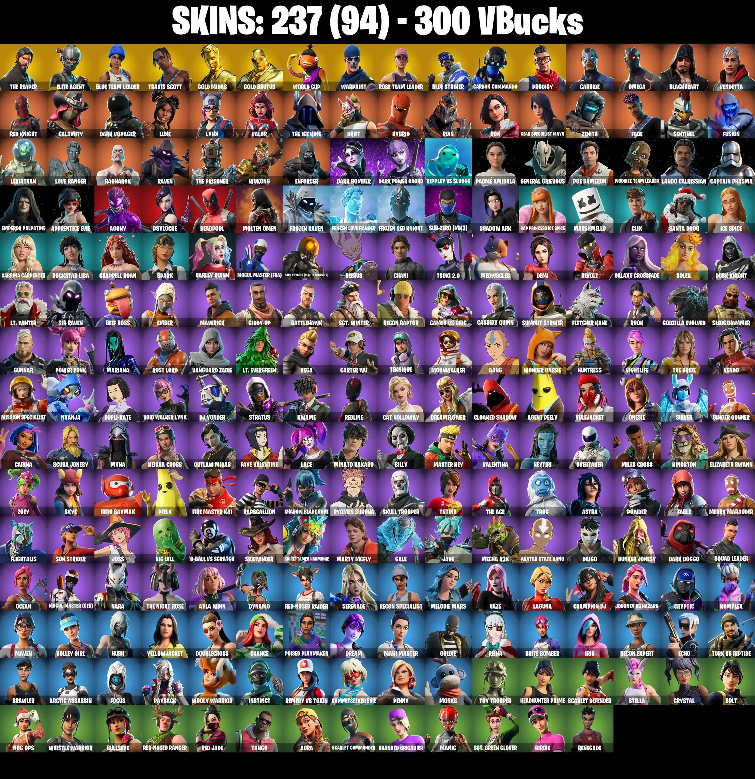 [PC/XBOX] 237 SKINS | OG STW | GOLD MIDAS | TRAVIS SCOTT | BLUE STRIKER | ELITE AGENT | GOLD BRUTUS | WORLD CUP | BLUE TEAM LEADER | THE REAPER