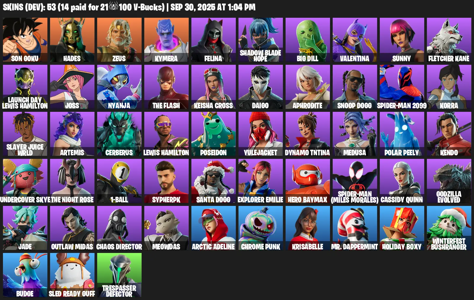 PC/XBOX 53 Skins⚡ | Son Goku | Hades | Zeus | Kymera | Felina | Shadow Blade Hope | Big Dill | Valentina | Sunny | Fletcher Kane | Launch Day Lewis Hamilton