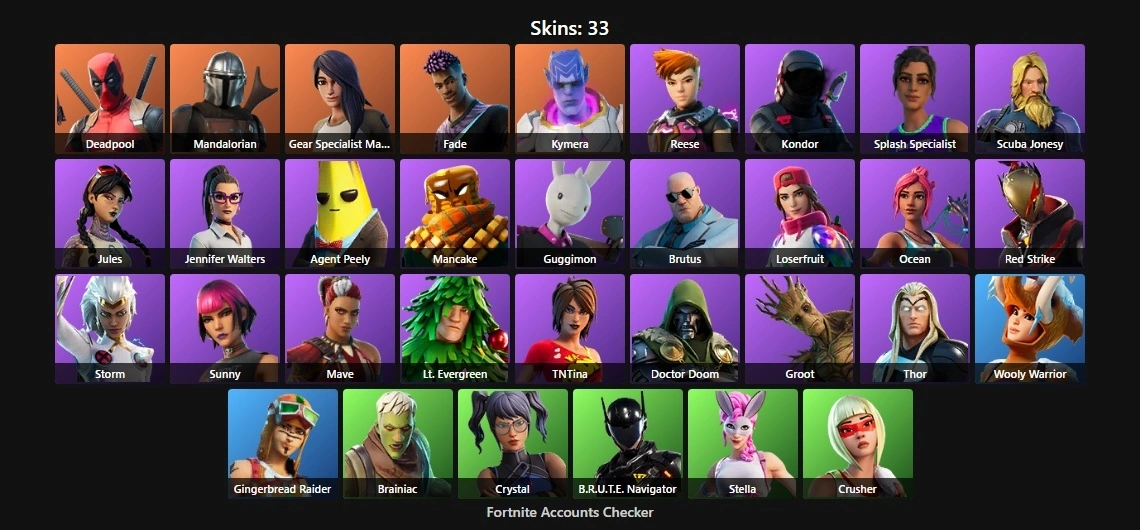 PC/XBOX/PSN 33 Skins⚡ | Deadpool | Mandalorian | Gear Specialist Maya | Fade | Kymera | Reese | Kondor | Splash Specialist | Scuba Jonesy | Jules