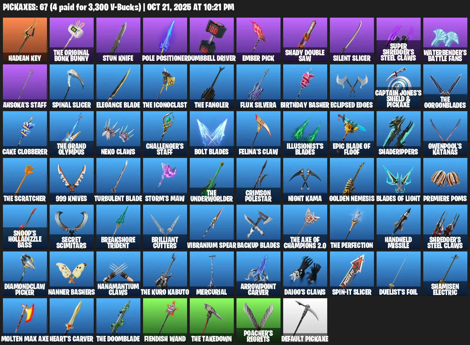 [PC/XBOX/PSN] 54 Skins | Hades | Valeria | Peter Griffin | Kado Thorne | Zeus | Jackie | Poseidon | Jade | Gwenpool | Lewis Hamilton | Emma Frost | Khaby Lame | Shuri | Artemis | Slayer Juice WRLD | Hero Baymax | Vengeance Jones | Nyanja | Captain Jones
