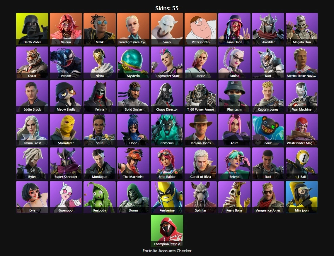 PC/XBOX/PSN 55 Skins⚡ | Darth Vader | Valeria | Malik | Paradigm (Reality-659) | Snap | Peter Griffin | Lana Llane | Shredder | Megalo Don | Oscar | Venom