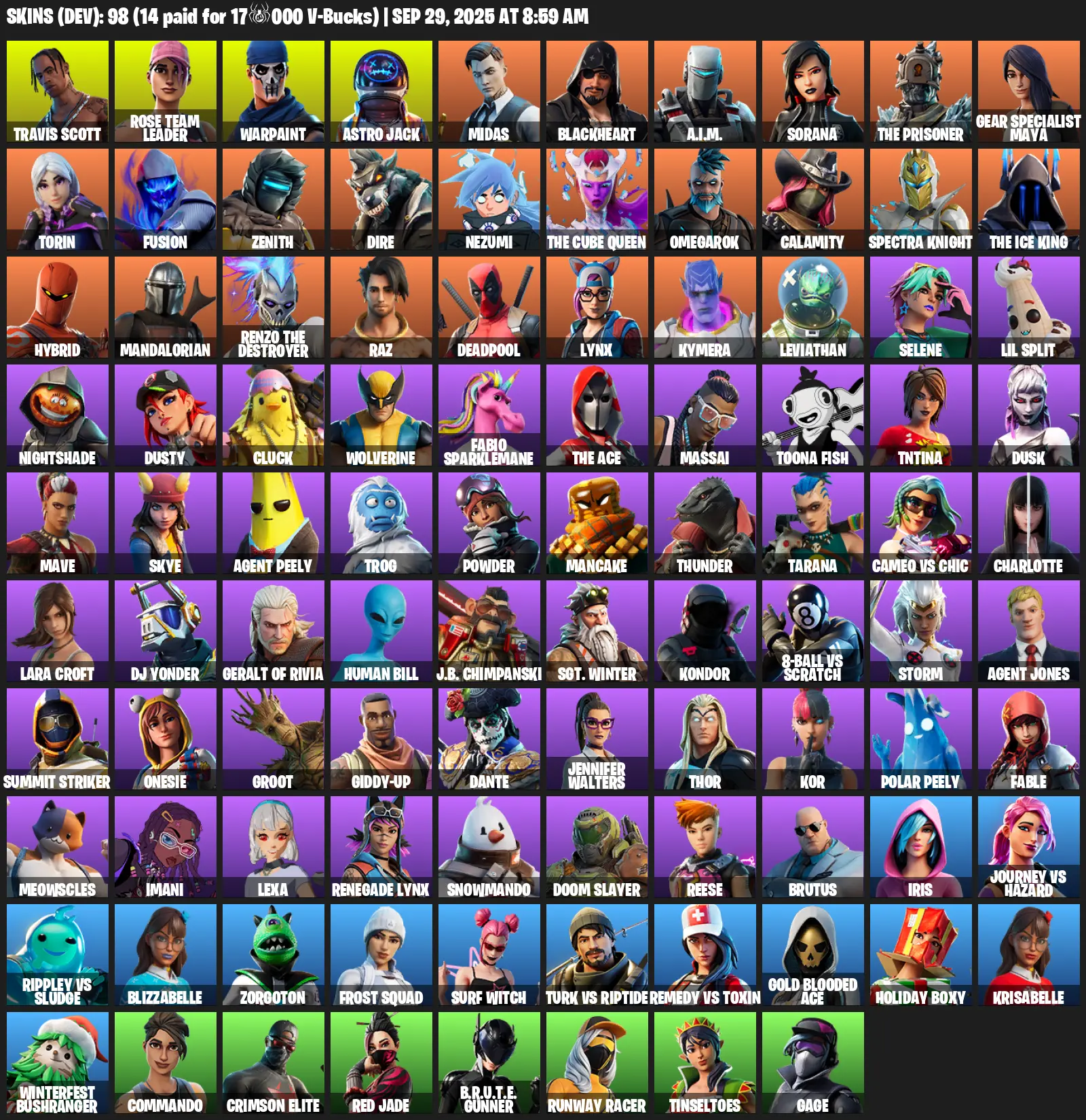 [PC/XBOX/PSN] 98 Skins | Travis Scott | Rose Team Leader | Warpaint | Astro Jack | Midas | Blackheart | A.I.M. | Sorana | The Prisoner | Gear Specialist Maya | Torin | Fusion | Zenith | Dire | Nezumi | The Cube Queen | Omegarok | Calamity | Spectra Knight