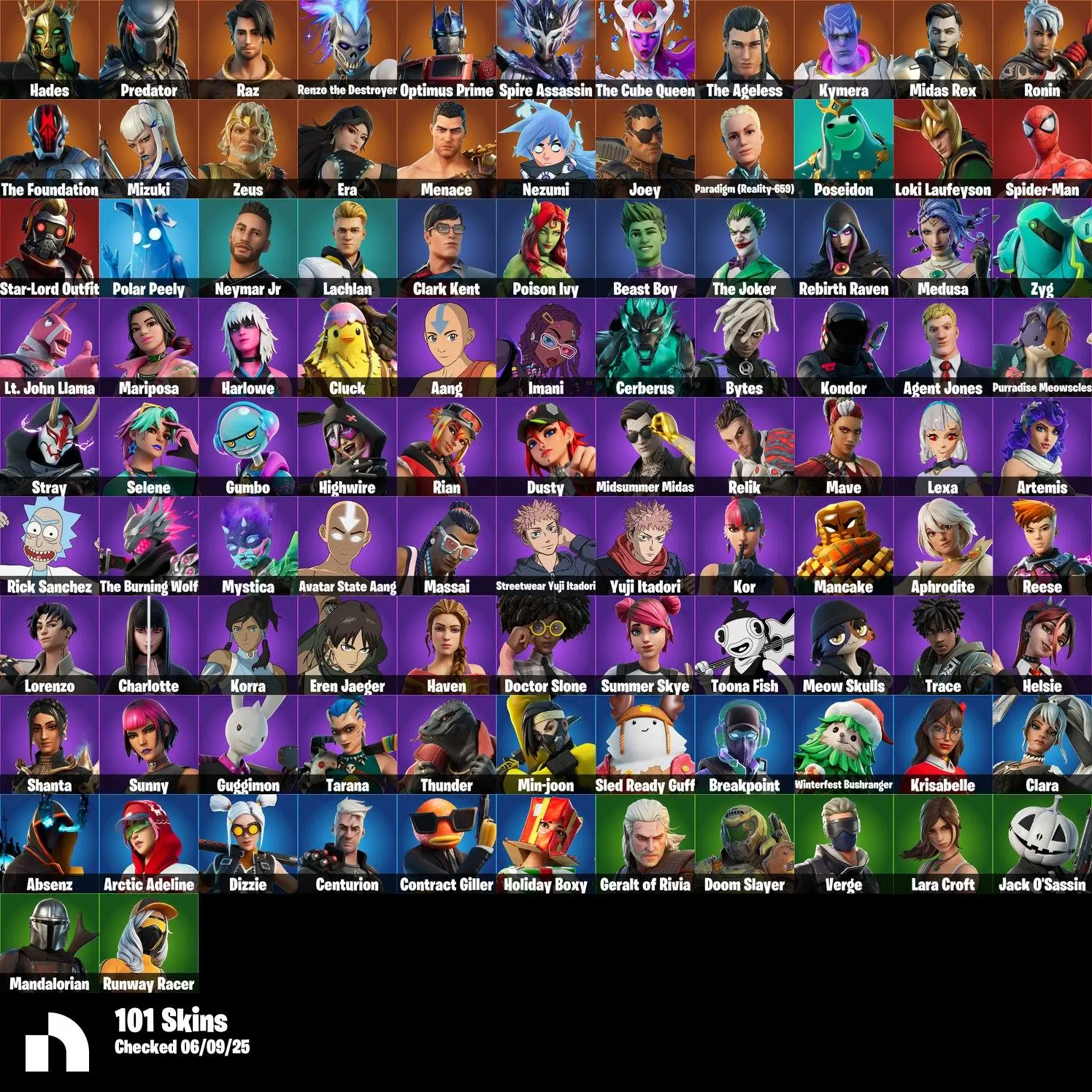 #PER268 [PC/PSN/XBOX] 101 Skins | Min-joon | Poseidon | Medusa | Zyg | Hades | Sled Ready Guff | Geralt of Rivia | Lt. John Llama | 450 VB