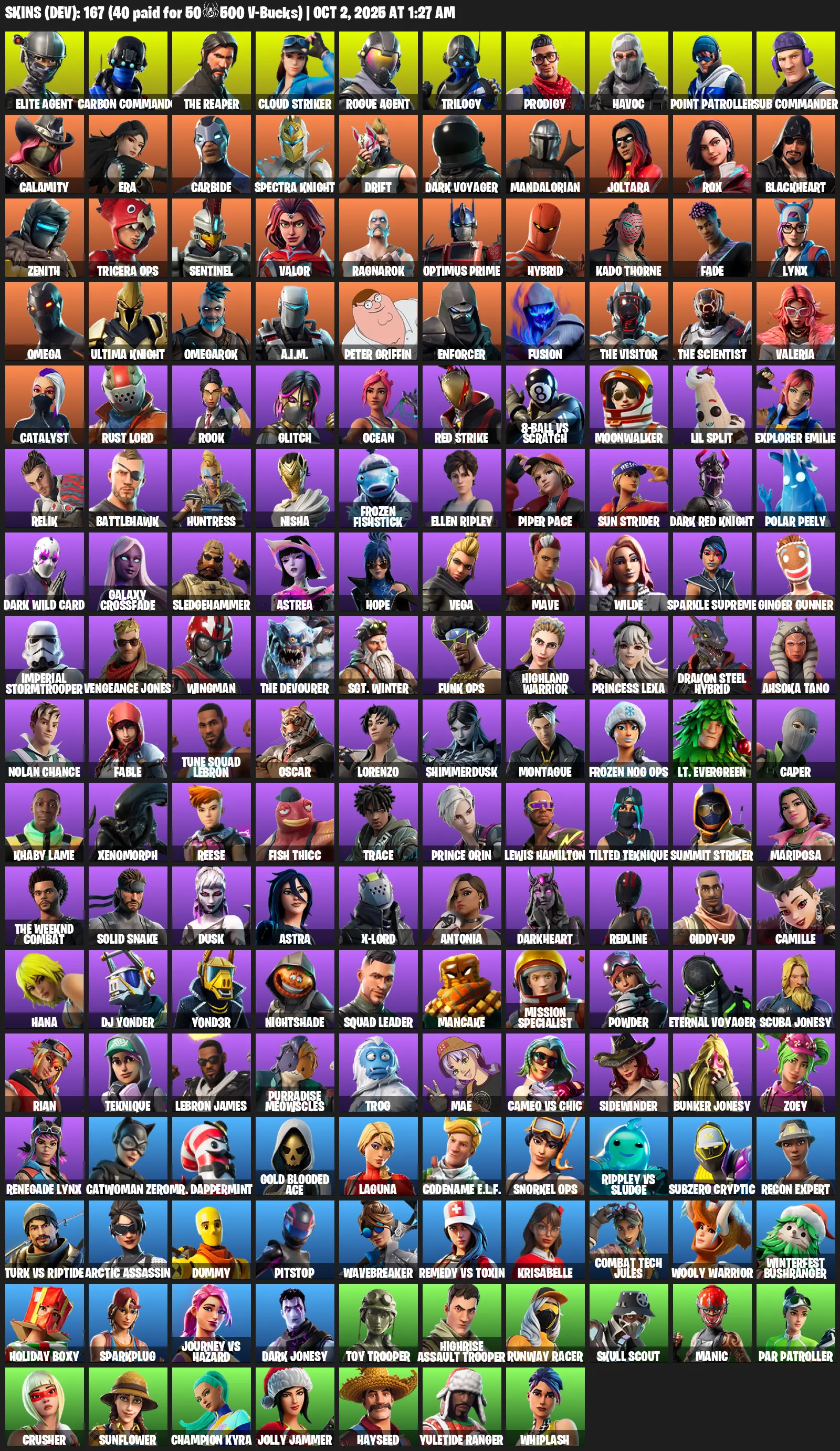 [PSN/XBOX/PC] 167 Skins | Elite Agent | Carbon Commando | The Reaper | Cloud Striker | Rogue Agent | Trilogy | Prodigy | Havoc | Point Patroller | Sub Commander | Calamity | Era | Carbide | Spectra Knight | Drift | Dark Voyager | Mandalorian | Joltara
