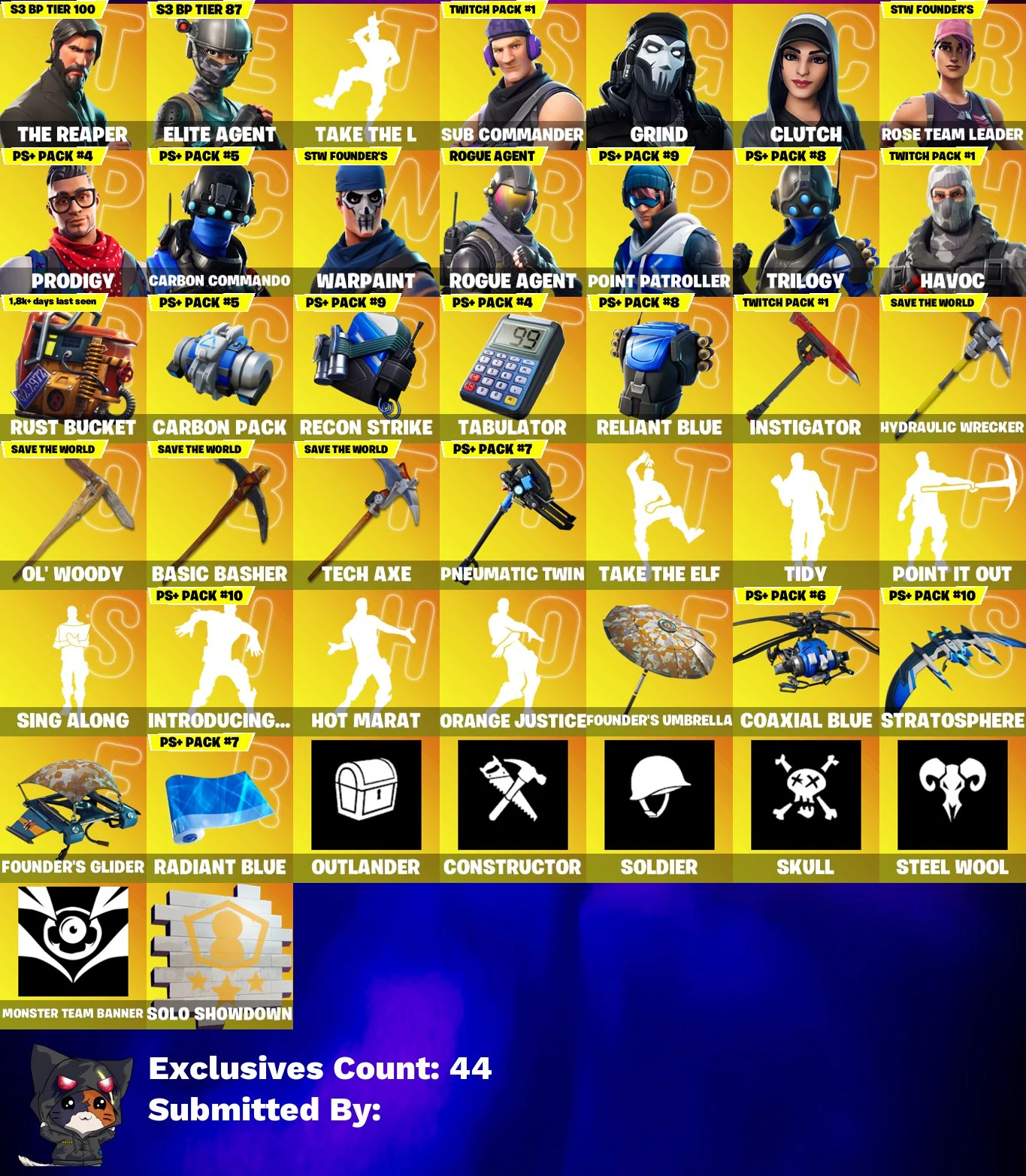 🎒🔥 STACKED OG ACCOUNT 🔥🎒 111 SKINS 💎 THE REAPER 💎 ELITE AGENT 💎 TAKE THE L 💎 GRIND 💎 CLUTCH 💎 HAVOC 💎 PRODIGY 💎 CARBON COMMANDO 💎 ROGUE AGENT 💎 POINT PATROLLER 💎 TRILOGY 💎 CARBIDE 💎 THE VISITOR 💎 ZENITH 💎 DRIFT 💎 50 VB 💎 OG STW 💎 FULL ACCESS 💎