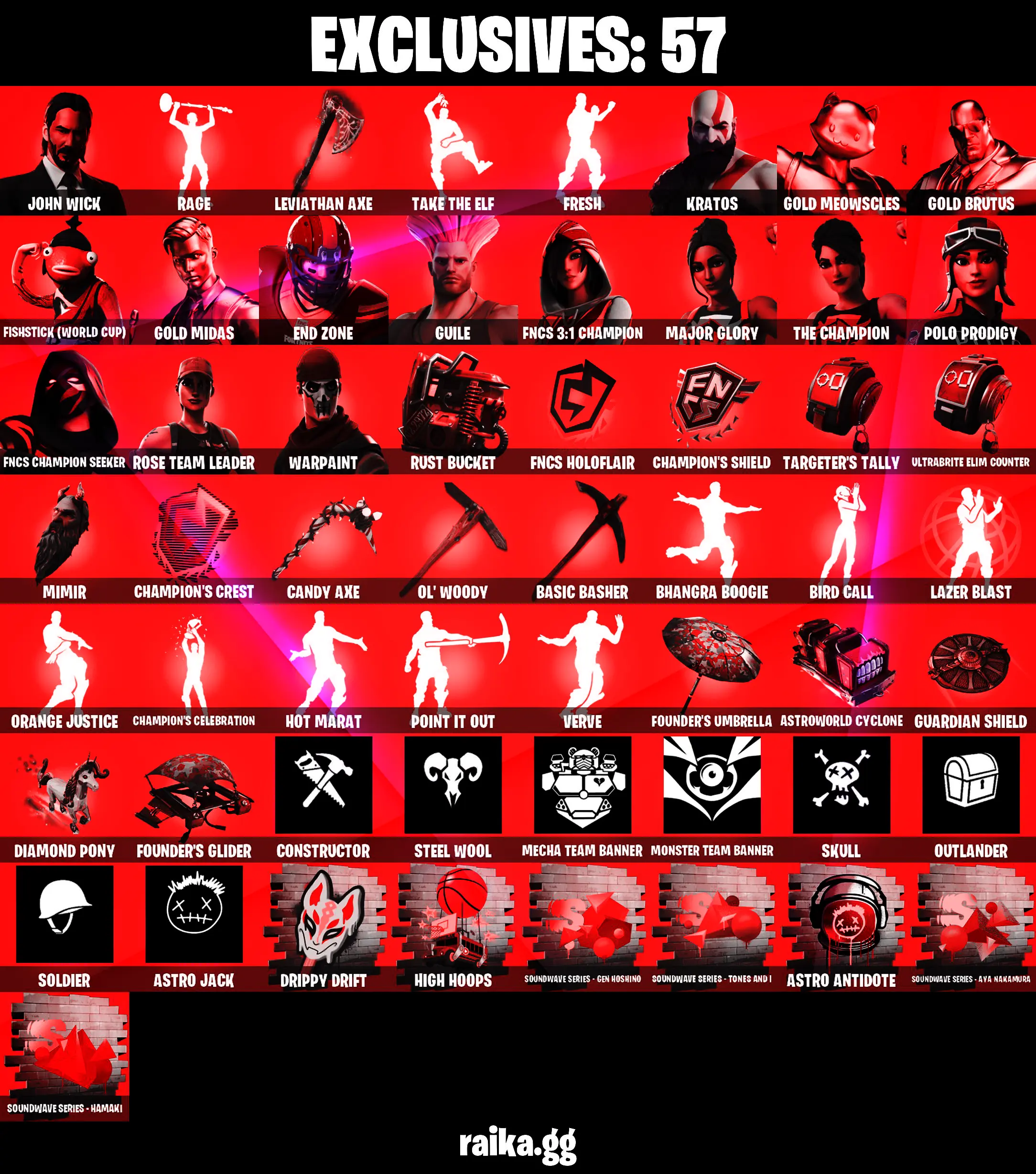 πβ¨ULTRA STACKED OG ACCOUNTβ¨π 732 SKINS π POLO PRODIGY π LEVIATHAN AXE π CHUN LI π AERIAL ASSAULT ONE π FRESH π KRATOS π GHOUL TROOPER π JOHN WICK π RAGE π AGENT PEELY π OMEGA π BACK ON 74 π TONY STARK π FRESH π RENEGADE RAIDER β‘οΈPC/PSN/XBOXβ‘οΈ