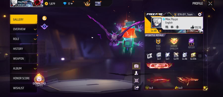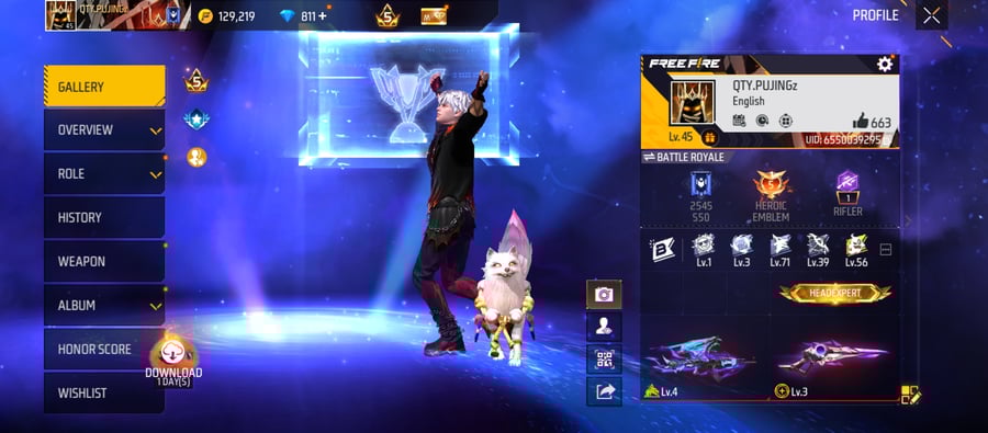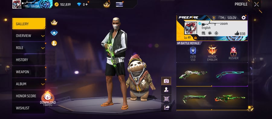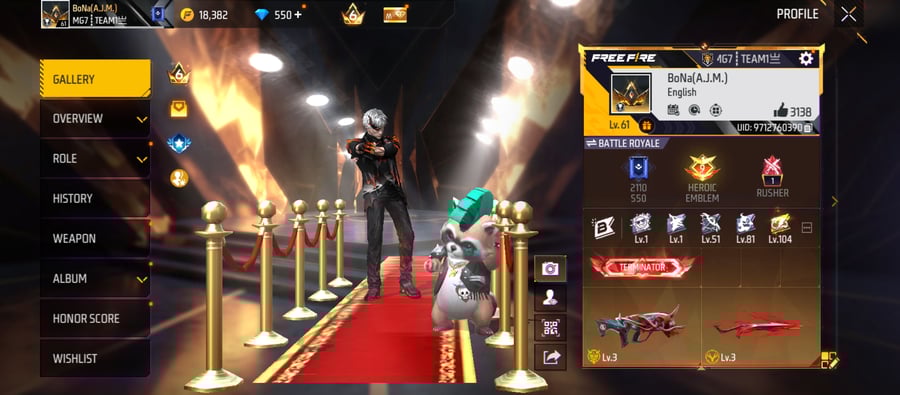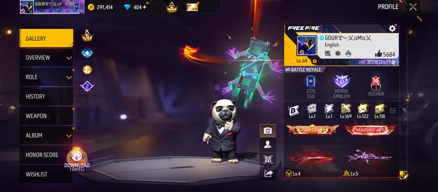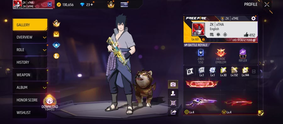 X277|Lvl 68|49 BUNDLE SET|TOP CRIMINAL GOLDEN SET|98 COSTUME|216 WEAPON(11 EVO+43 MYTHIC)|AK47 Blue Draco Lv 5|M1887 Conqueror Lv 4|UCHIHA MP40|DIGIMON BIZON