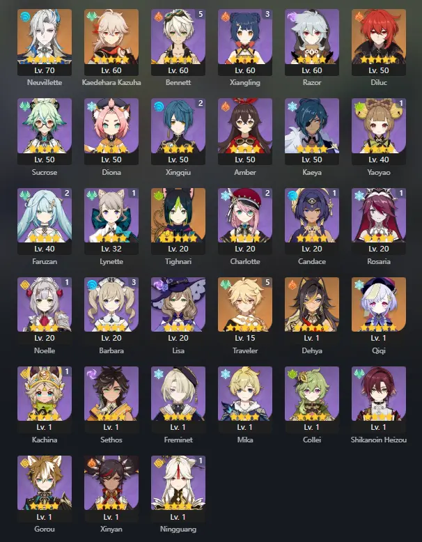 AR45 / NA {7X 5 STAR LEGENDS} Neuvillette / Kazuha / Diluc / Tighnari / Dehya / Qiqi / {0-WEAPON}- FULL ACCESS