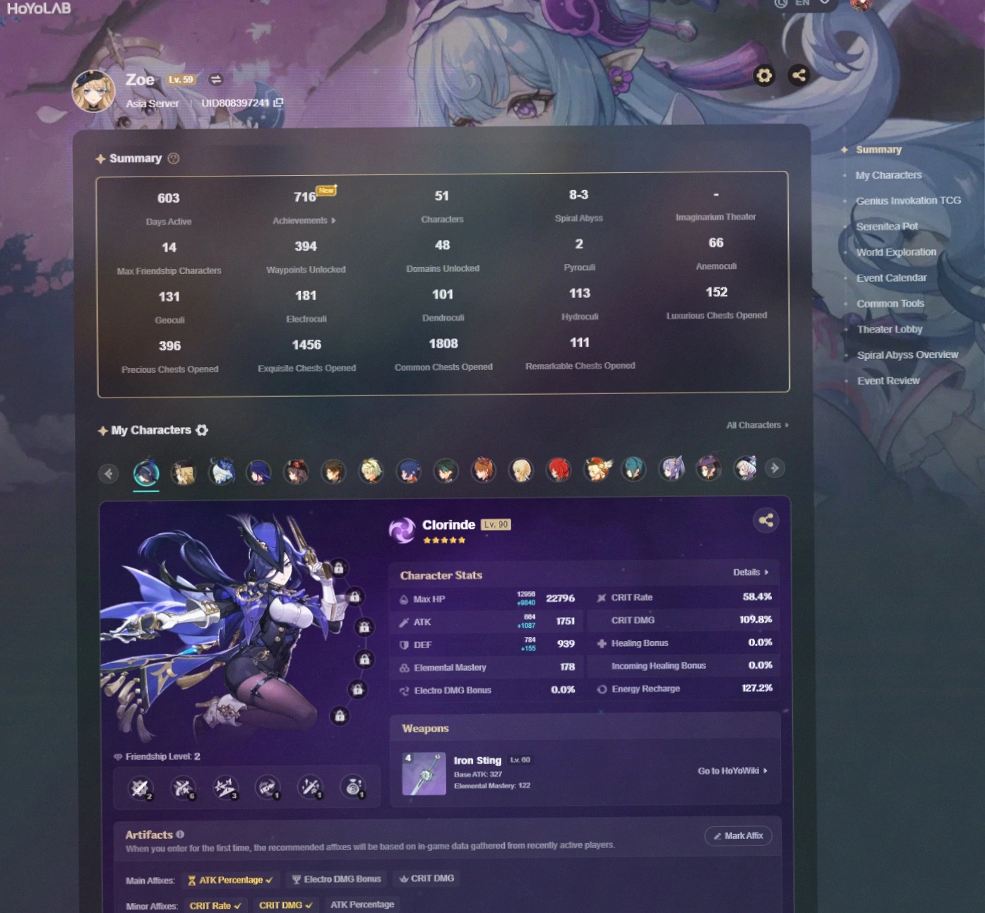 [ASIA HANDLEVELED] AR 59 | Raiden C2+Furina C1+Clorinde+Navia+Hu Tao+Zhongli+Xiao+Childe+Nahida+Klee | FULL ACCESS + EMAIL #CODE-160674