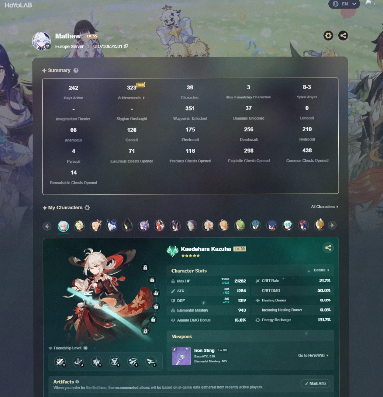 [EU HANDLEVELED] AR 55 + 9 LEGS + Kazuha+Furina+Yoimiya+Nilou+Keqing C1+Tighnari+MORE! + FULL ACCESS + EMAIL #LOT-165573