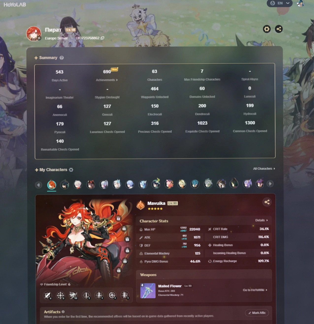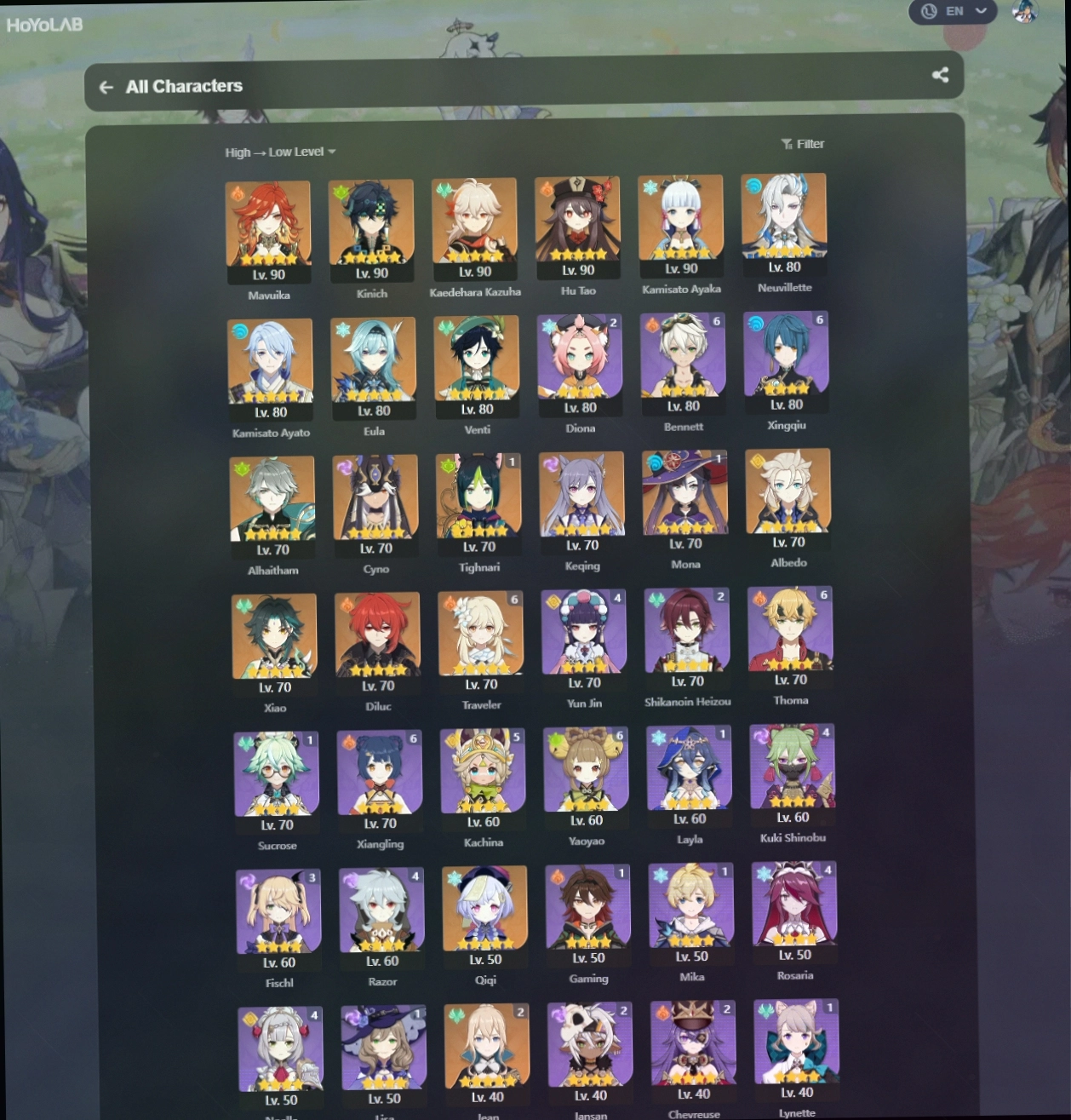 [EU HANDLEVELED] AR 58 + 26 LEGS + Mavuika+Kinich+Kazuha+Hu Tao+Alhaitham+Ayaka+Venti+Ayato+Eula+Cyno+Albedo+Xiao+Neuvillette+MORE! + FULL ACCESS + EMAIL #ITEM-165579