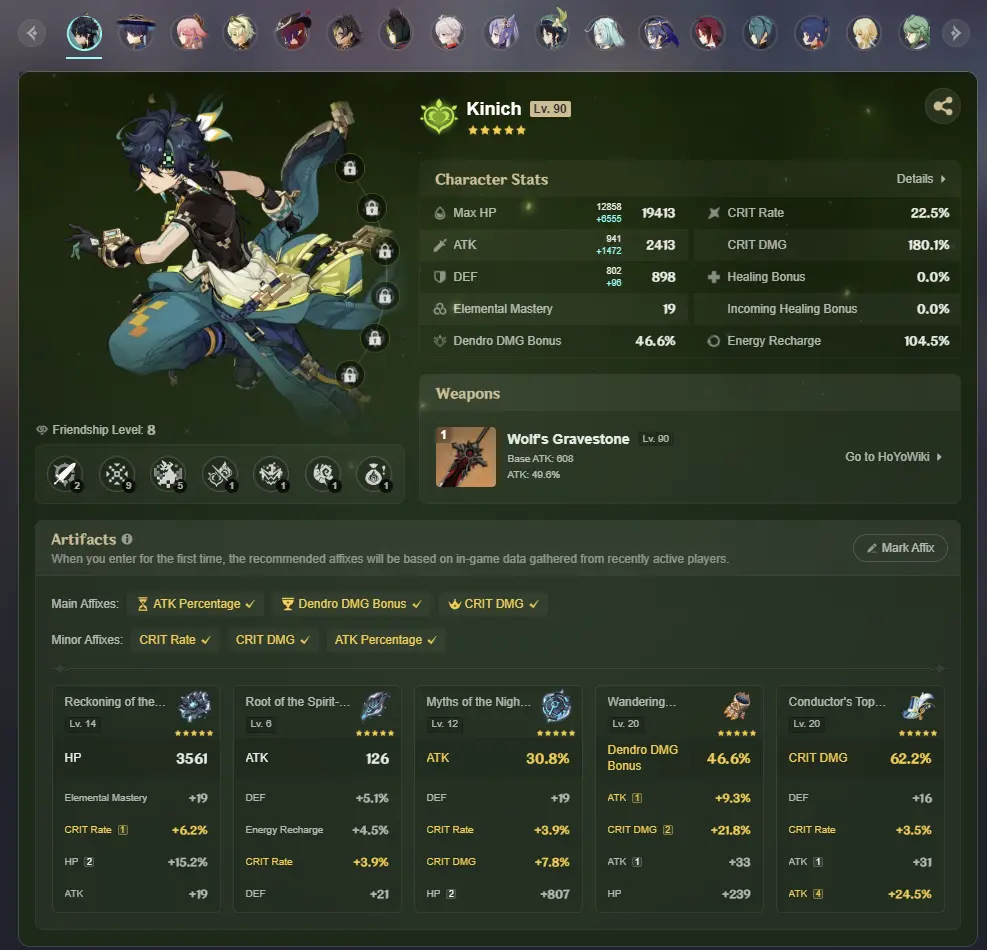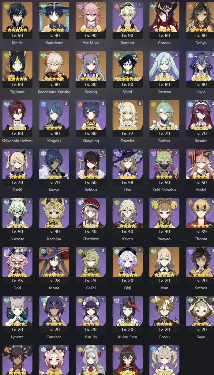 NA | AR 56 | 13 + 3 Leg | Kinich | Yae Miko | Wanderer | Chasca | Dehya | Tighnari | Kazuha | Venti | Baizhu | Keqing | Mona | Jean | Qiqi