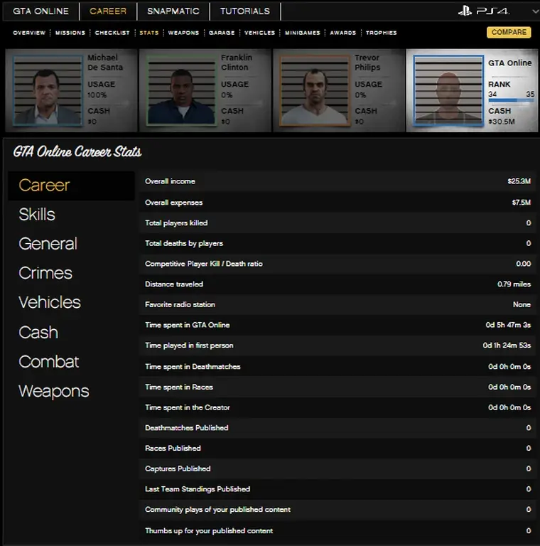 [PS4] GTA 5 Modded Account 💣 $79.86 Million Cash + Cars | RP Rank 35 | Instant Delivery | PZ47