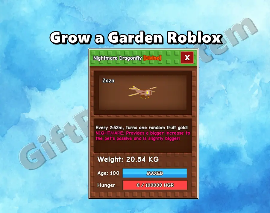 Mutation Nightmare Dragonfly 20Kg ++ Age 100 Grow a Garden