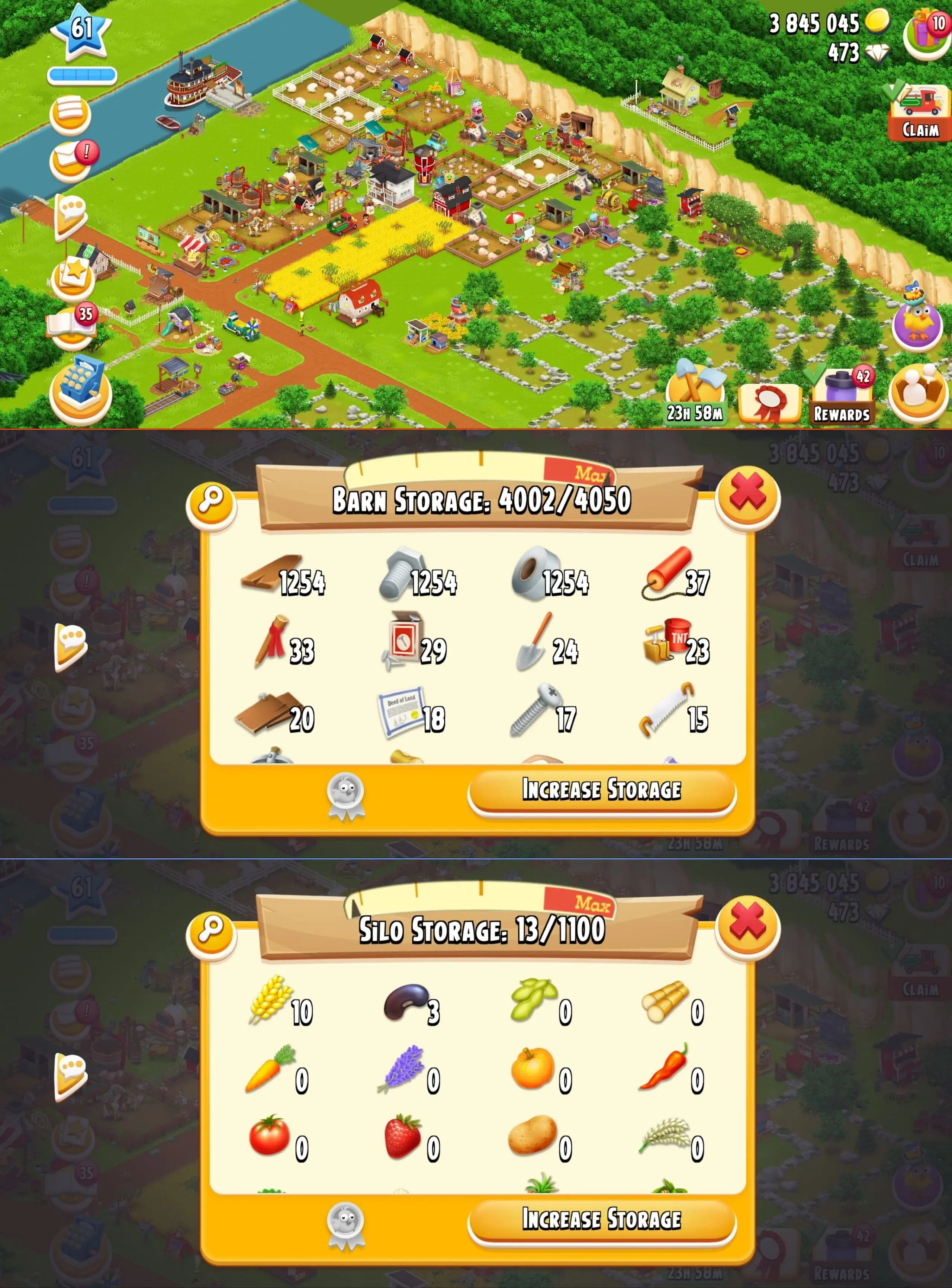 🚜 BOUNTIFUL HARVEST 🚜 LEVEL 61 🏘️ 4050 BARN STORAGE 🏗️ 1100 SILO STORAGE 🔨 FULLY FILLED WITH BARN TOOLS 💰 3.8M COINS 💎 473 DIAMONDS 📱 ANDROID & IOS ⚡ INSTANT DELIVERY