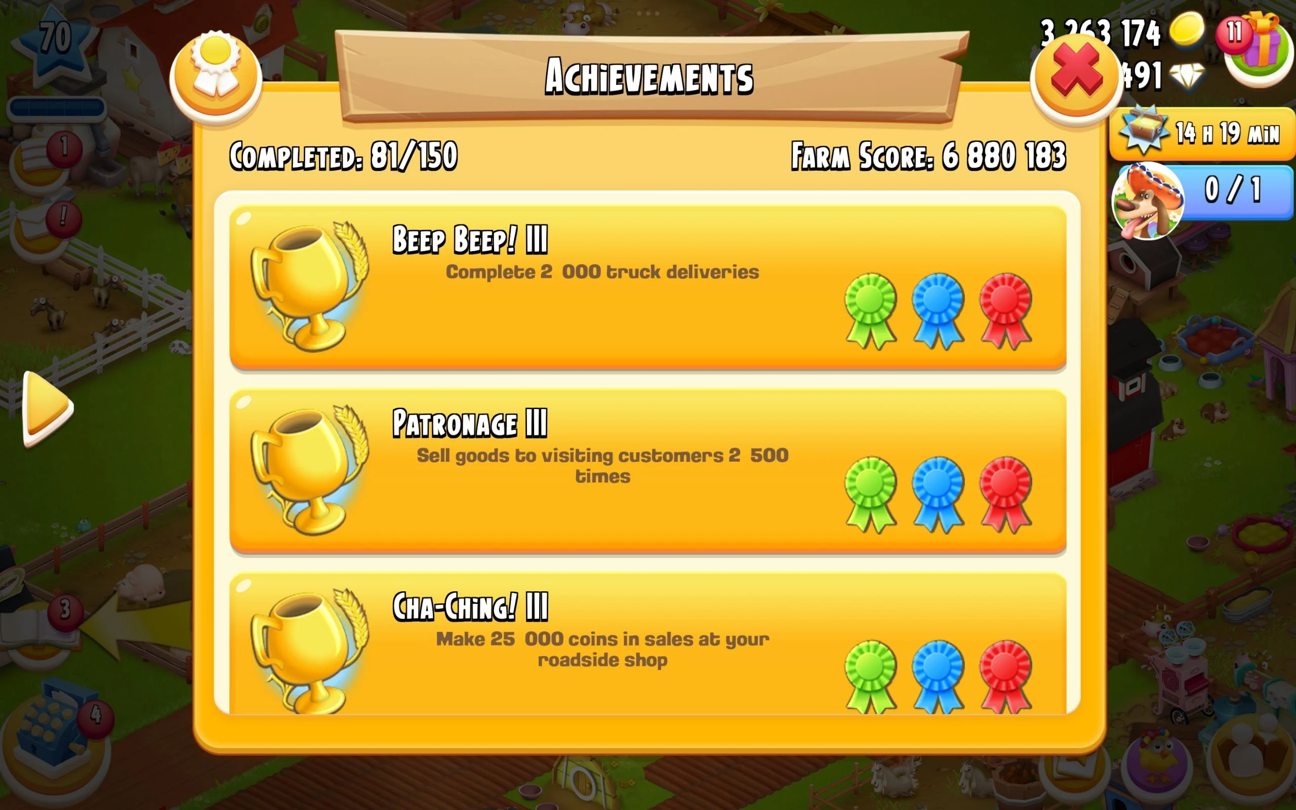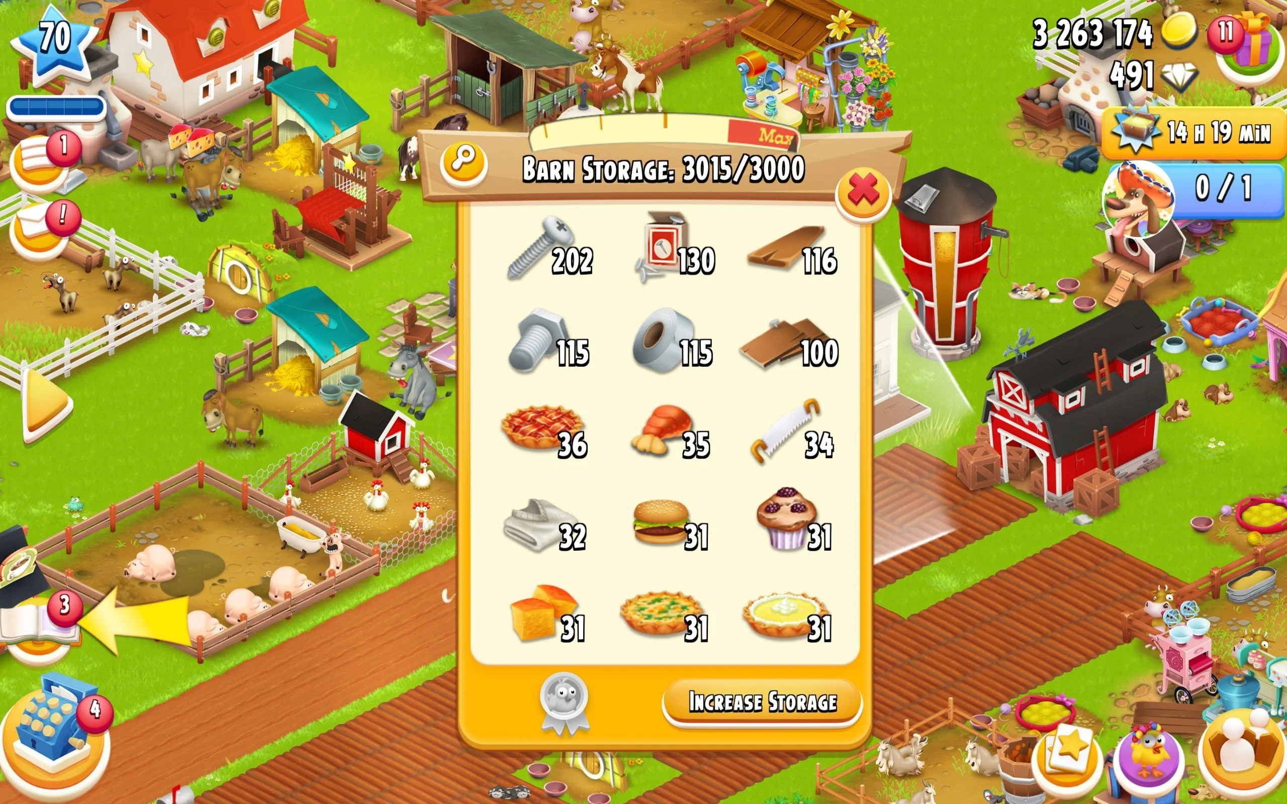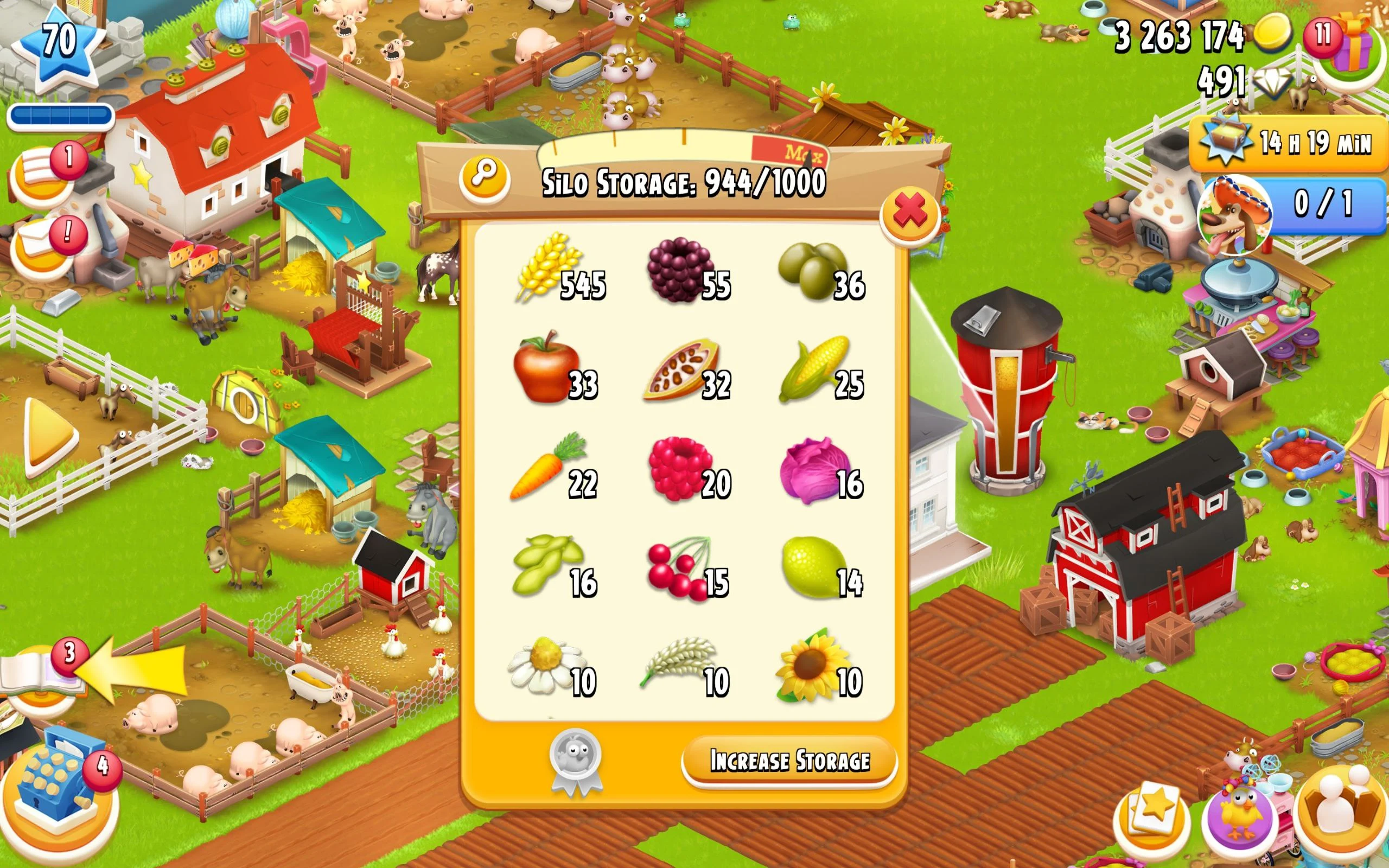 ✨️ CHEAPEST LEVEL 70 HAY DAY FARM 🌾 3263174 COINS🪙 3015/3000 BARN STORAGE💪 944/1000 SILO STORAGE🎯 491 GEMS💎 SUPPORTS BOTH iOS&Android✅️ INSTANT DELIVERY 🚚