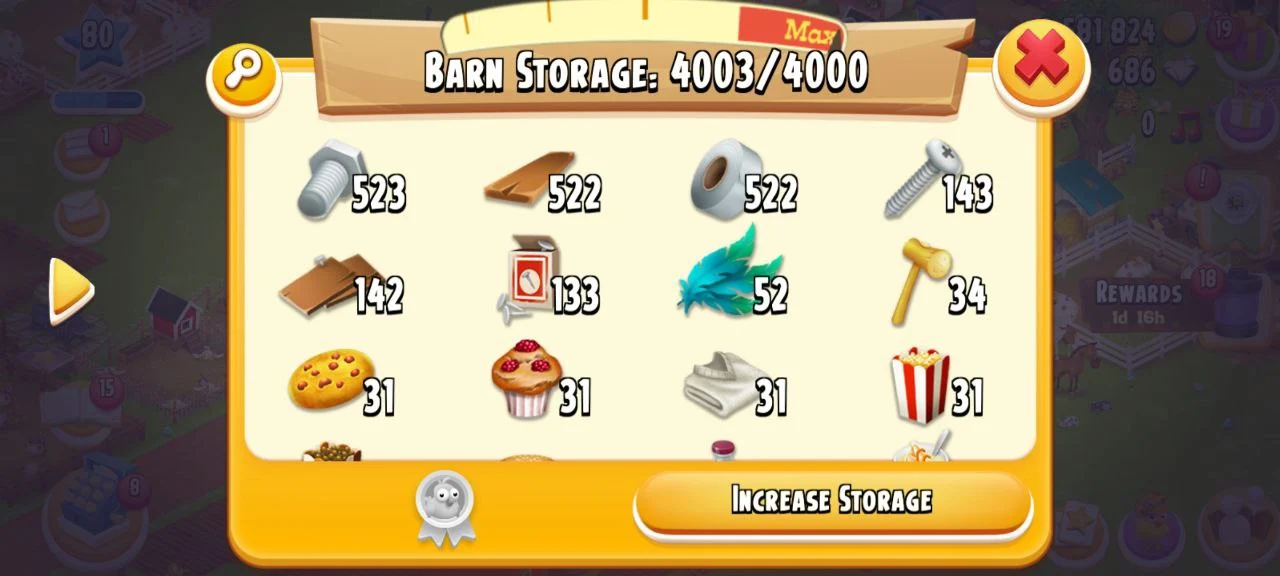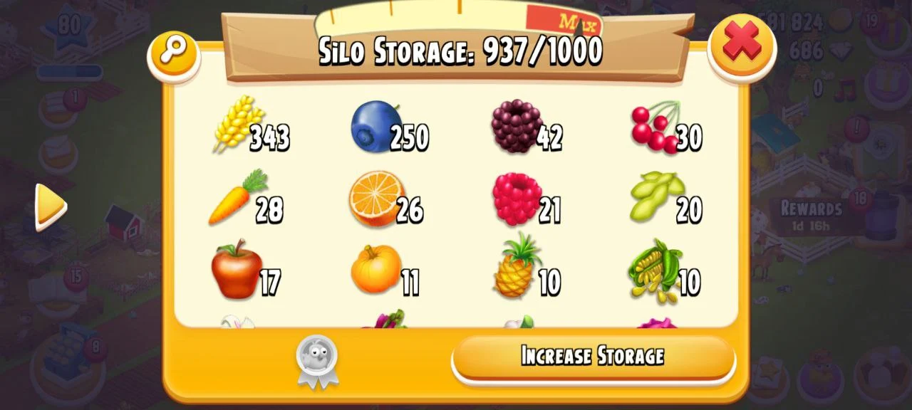 ✨️ CHEAPEST LEVEL 80 HAY DAY FARM 🌾 3581824 COINS🪙 4003/4000 BARN STORAGE💪 937/1000 SILO STORAGE🎯 686 GEMS💎 SUPPORTS BOTH iOS&Android✅️ INSTANT DELIVERY 🚚