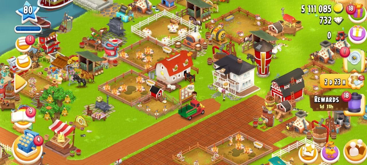 ✨️ CHEAPEST LEVEL 80 HAY DAY FARM 🌾 5111085 COINS🪙 4050/4050 BARN STORAGE💪 1033/1050 SILO STORAGE🎯 732 GEMS💎 SUPPORTS BOTH iOS&Android✅️ INSTANT DELIVERY 🚚