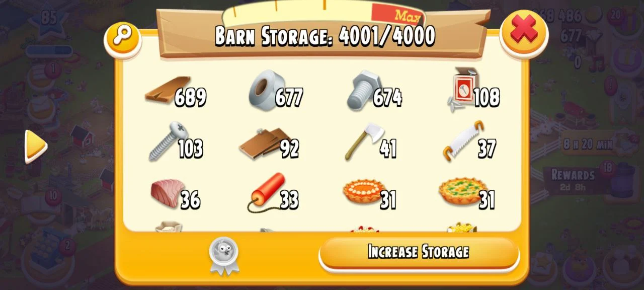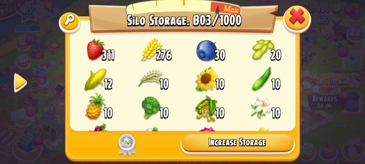 ✨️ CHEAPEST LEVEL 85 HAY DAY FARM 🌾 2068486 COINS🪙 4001/4000 BARN STORAGE💪 803/1000 SILO STORAGE🎯 677 GEMS💎 SUPPORTS BOTH iOS&Android✅️ INSTANT DELIVERY 🚚