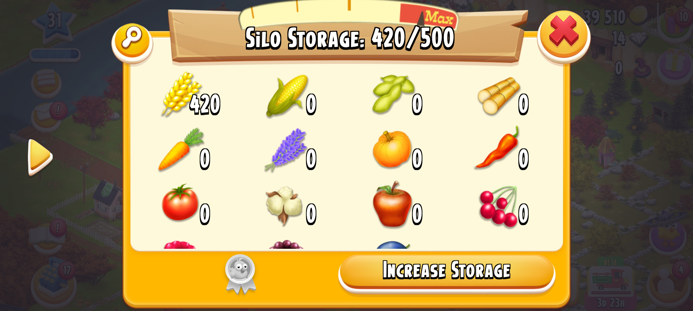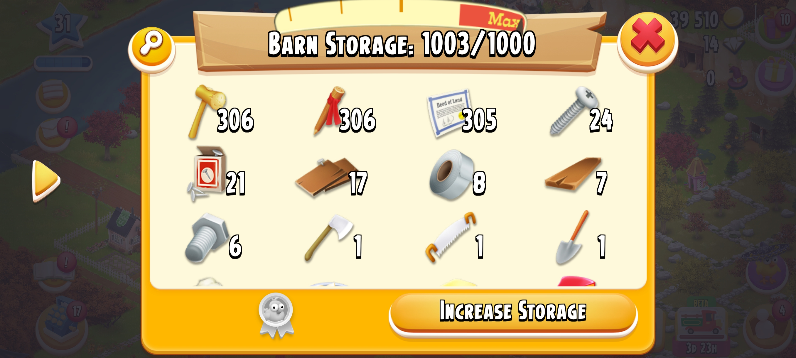 🏆 LEVEL 30🥇🏚️ 1000 Barn Storage🛠️ 🌟Fully Filled With Tools🌟🌍 Main Land Open🌾 500 Silo Storage💰 39K+ Coins & 💎 14 Diamonds⚡ Instant Delivery