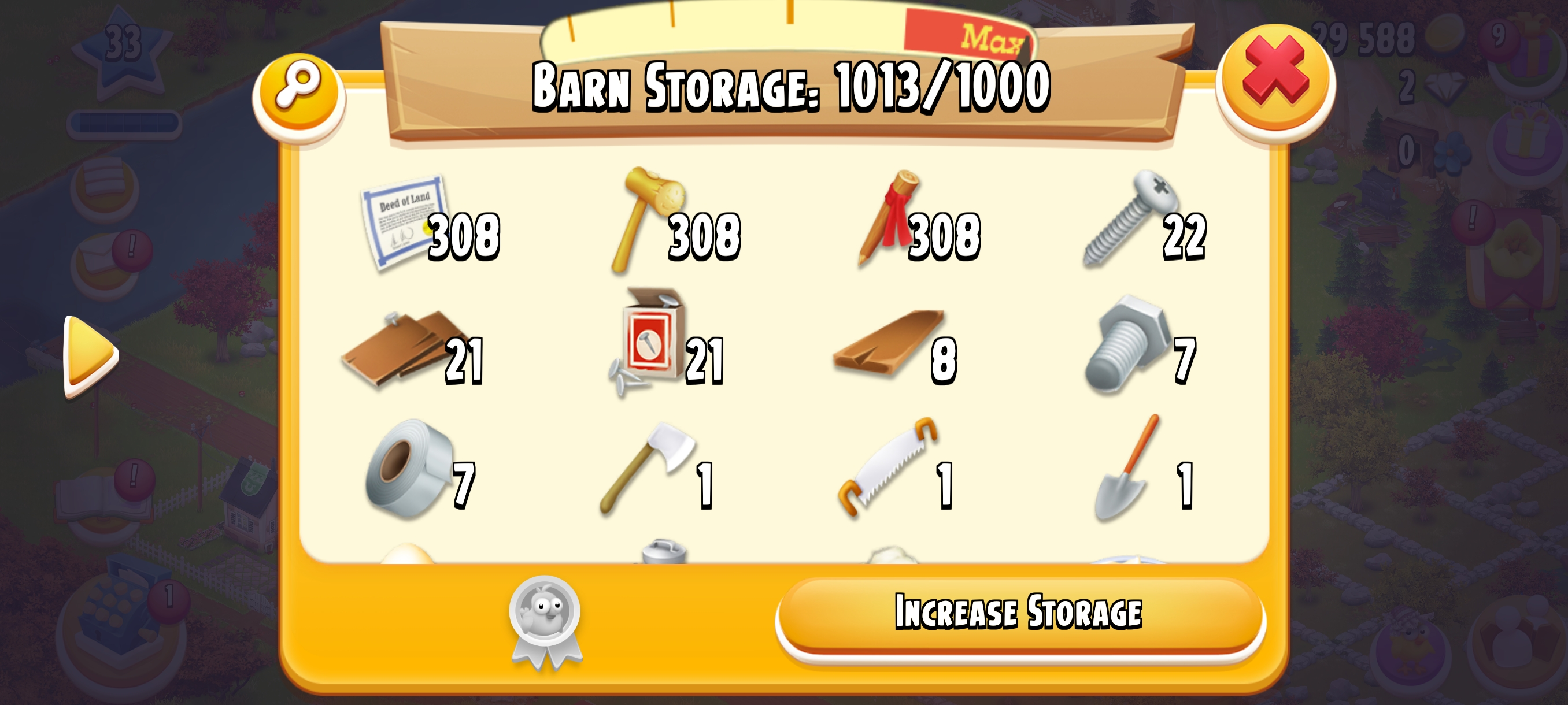 🏆 LEVEL 33 🏚️ 1000 Barn Storage🛠️ Fully Filled With Tools🌍 Main Land Open🌾 500 Silo Storage💰 29k+ Coins & 💎 2 Diamonds⚡ Instant Delivery