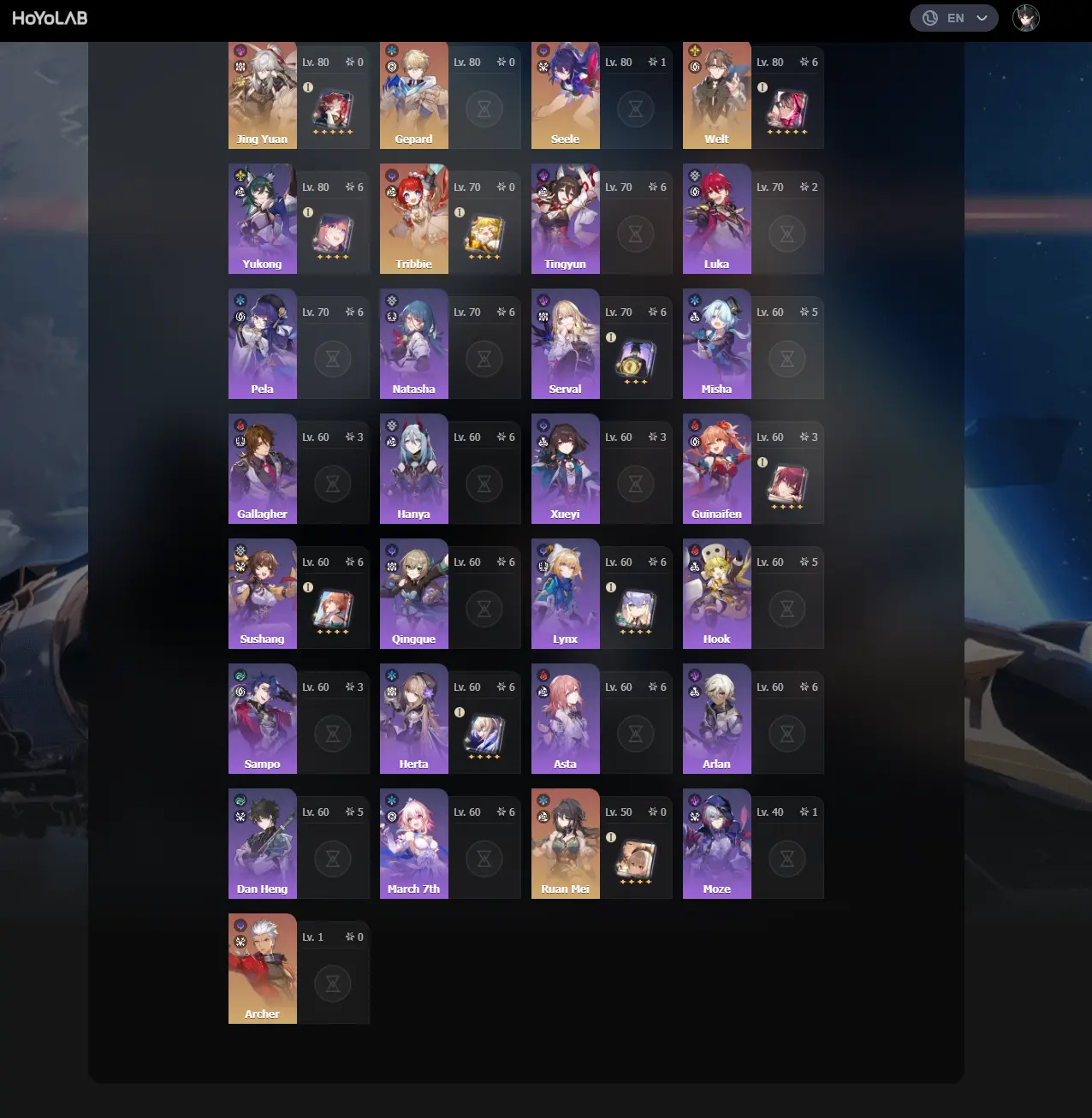 #HK1990 [EU] TL 70 | 21 EVENTE LEGS + GENSHIN | Castorice+Tribbie+Rappa+Jade+Aventurine+Lingsha+Feixiao+Jiaoqiu+Dan He+Seele E1 | FULL ACCESS + EMAIL