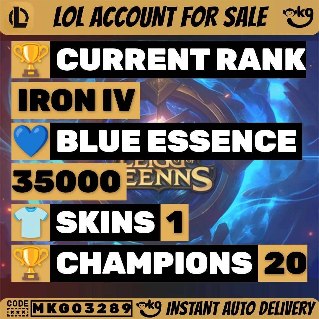 π₯ EUW π Iron IV 0LP (out of placement) β¨ New Season β +35k BLUE π₯ +20champ π₯ 0 βΈ± 3+ Skins π Verified / Unverified account β‘ Instant Delivery β
