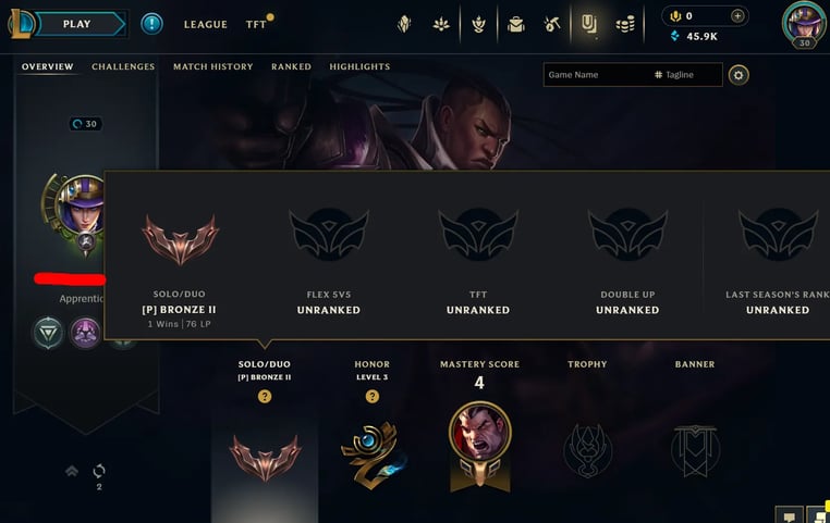 Akun LoL Bronze