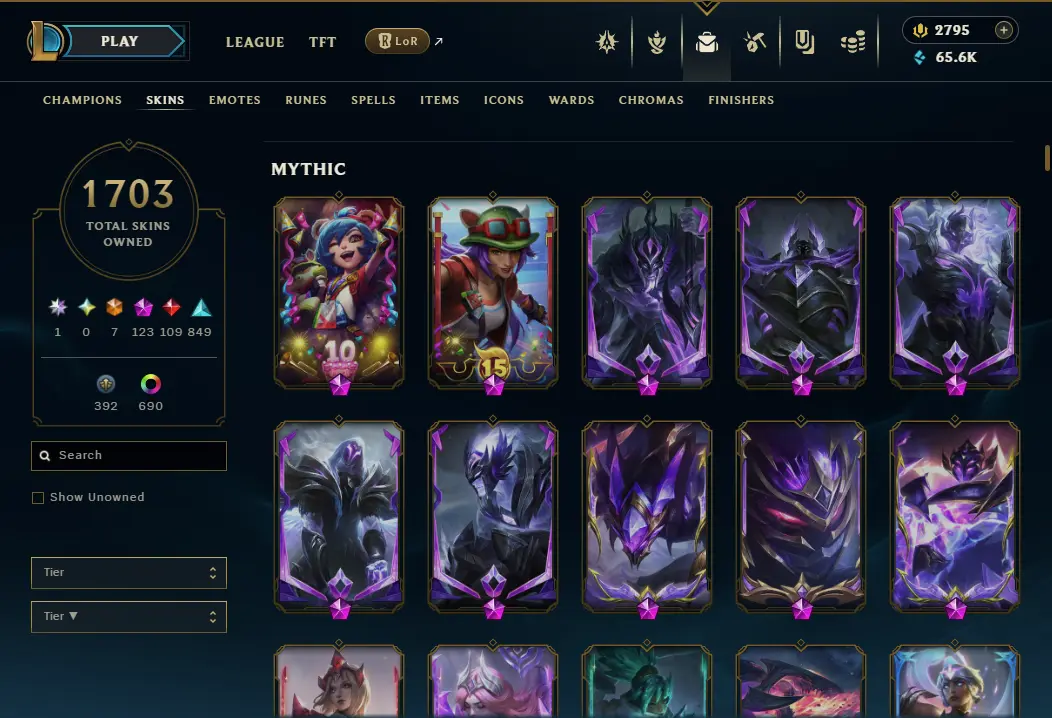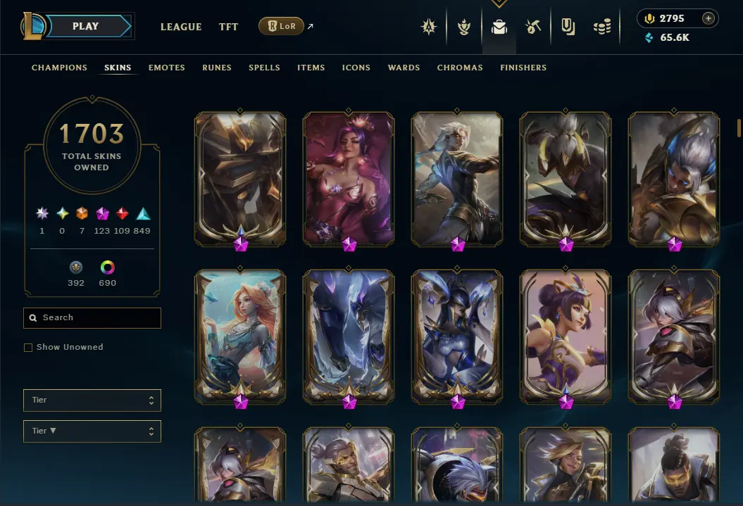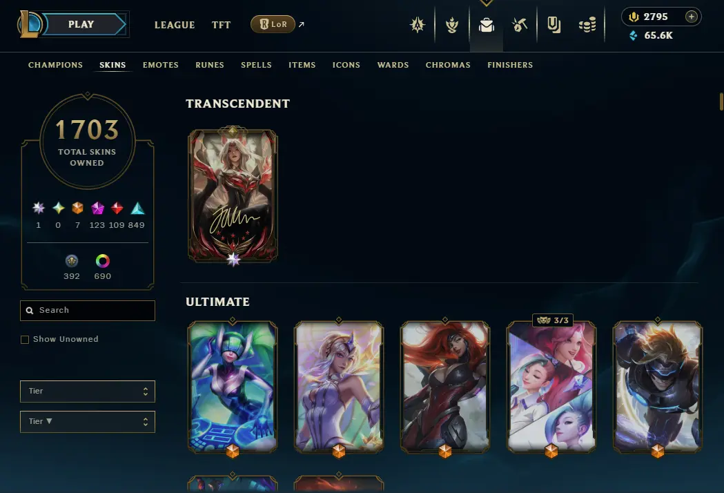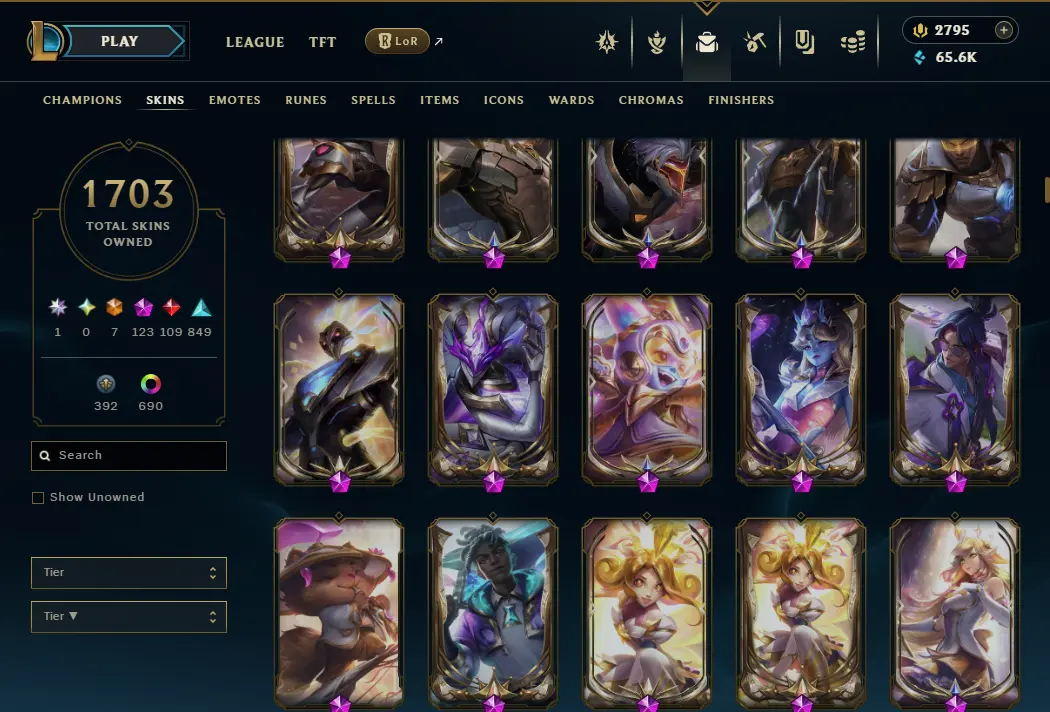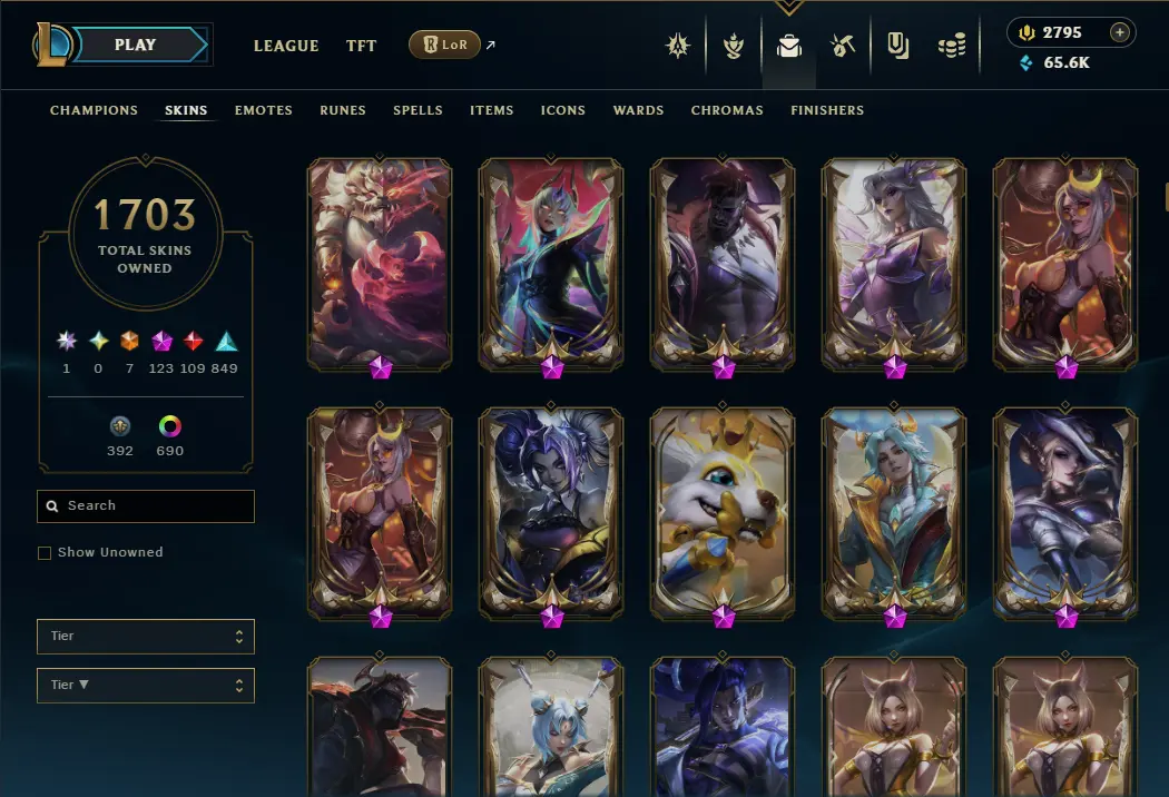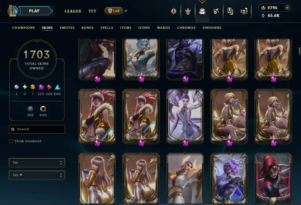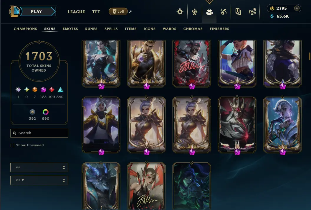 [EUW] 1703 skins ~ Immortalized Legend Ahri + PAX Sivir + Pax Twisted Fate + Black Alistar + King Rammus + 704 Chromas + 1161 Icons + Tft Loot + OGE