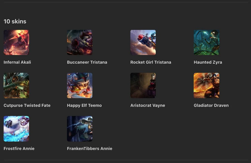 NA ⸱ LEVEL 16 ⸱ UNRANKED ⸱ 14 SKINS 4843 BE , 227 RP ⸱ 12 CHAMP