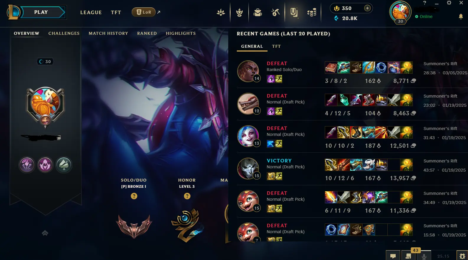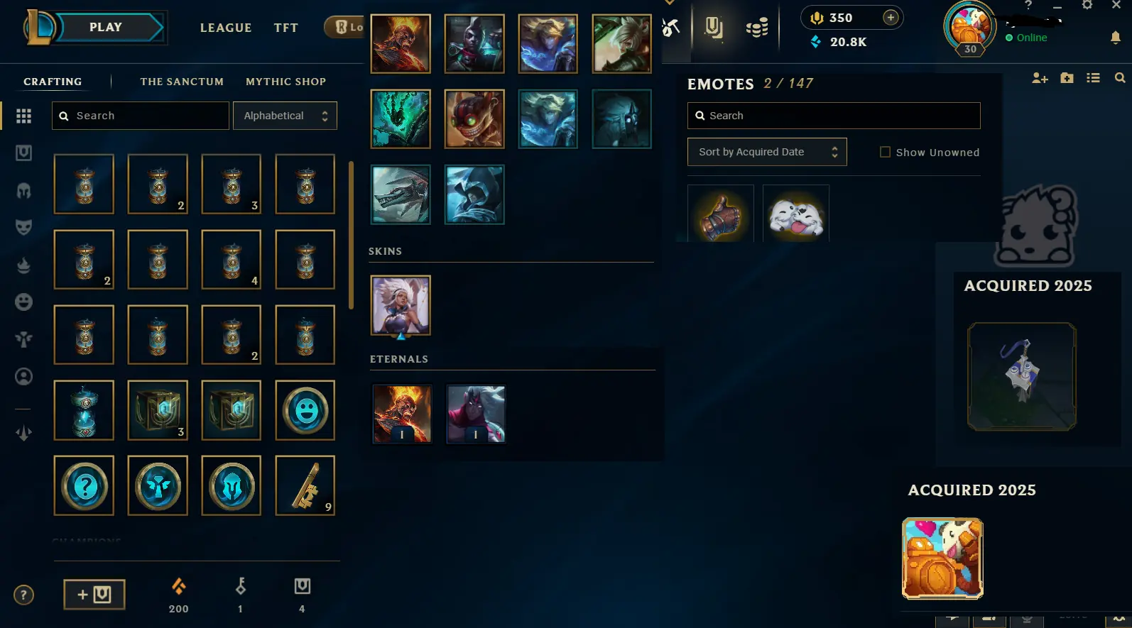 OCE♨️HAND Made ARAM🌟Ranked Ready ✅Untouched Loot✅20.8K BE✅350RP✅Aram Only✅Bronze 1