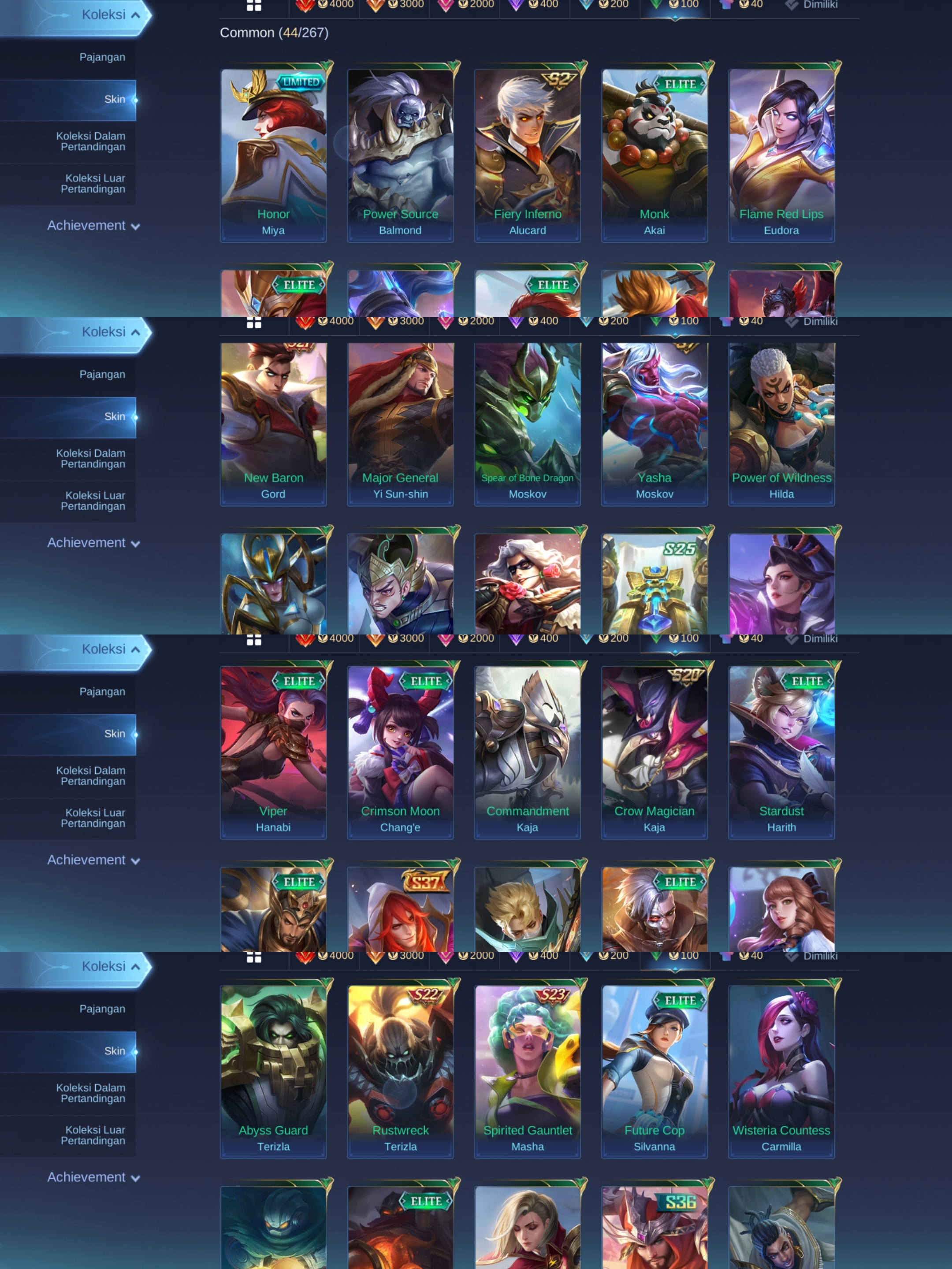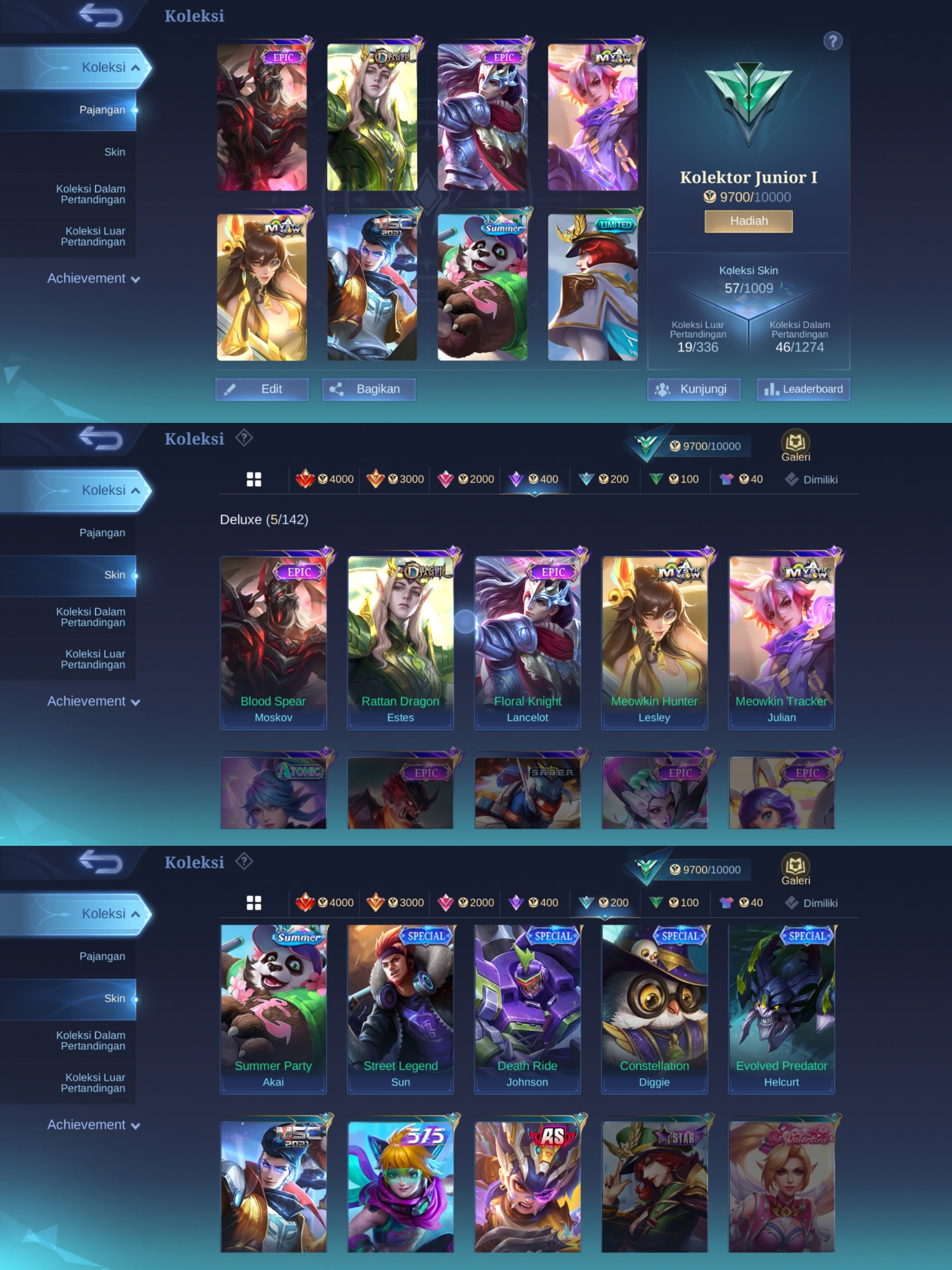 BEST MEGA DEAL✨HERO 51✨SKIN 57✨EMBLEM SEMIMAX✨EPIC MOSKOV ✨DRAGON ESTES✨MYSTIC MEOW LESLEY & JULIAN✨MSC CLAUDE✨AS POPOL✨SMURF GG