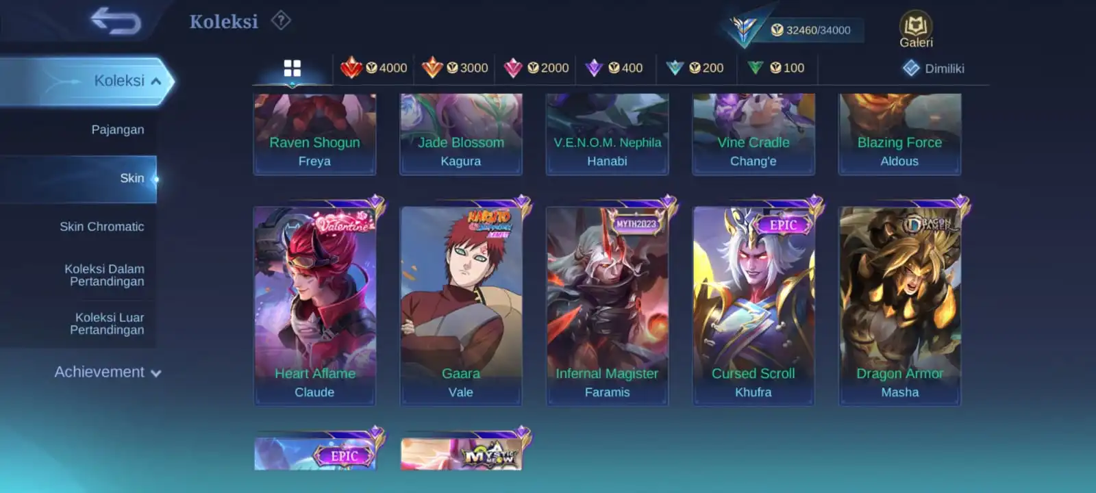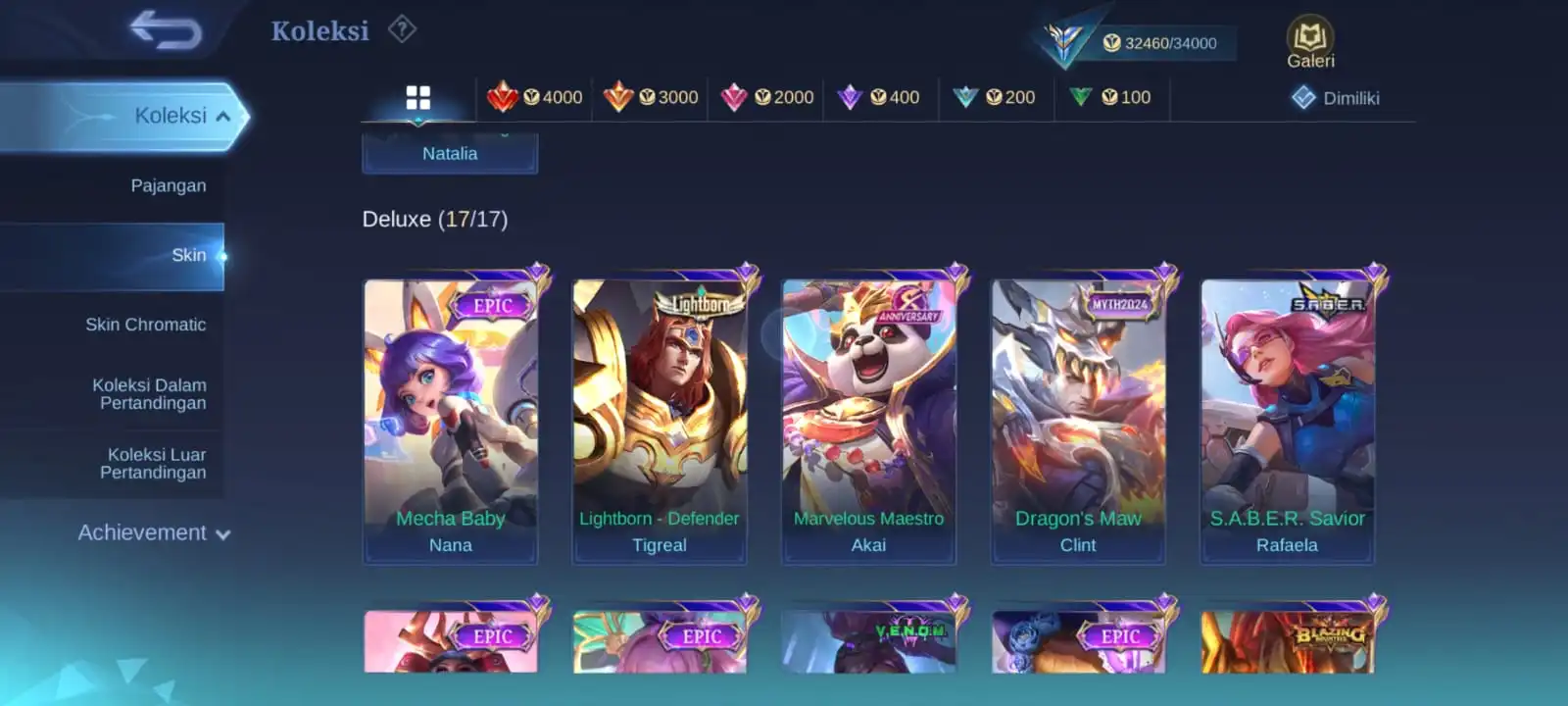 BEST MEGA DEAL✨HERO MAX 119✨SKIN 179✨EMBLEM MAX ✨NATALLIA CC✨VALE NARUTO✨ALDOUS BLAZING ✨CLAUDE VALENTINE✨MASHA DRAGON✨MYTH 2x✨DELUXE 17✨EXCEPTIONAL 28✨CHROMATIC 19✨SAFE ACC✨INSTAN DELIVERY