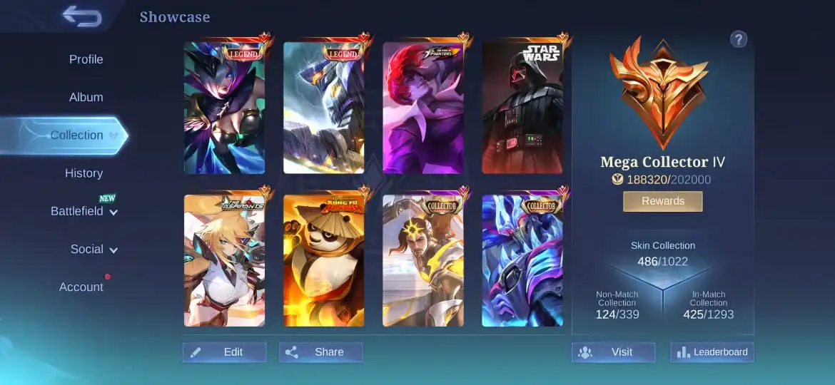 [IOS/ANDROID] CEL LVL 108 | 130 HEROES | 486 SKINS | MEGA 4 | HIGH WR | 2 LEGEND MIYA SABER ⸱ RARE COLLECTORS ⸱ KOF ⸱ STARWARS ⸱ ASPIRANT ⸱ KUNGFU PANDA ⸱ KISHIN