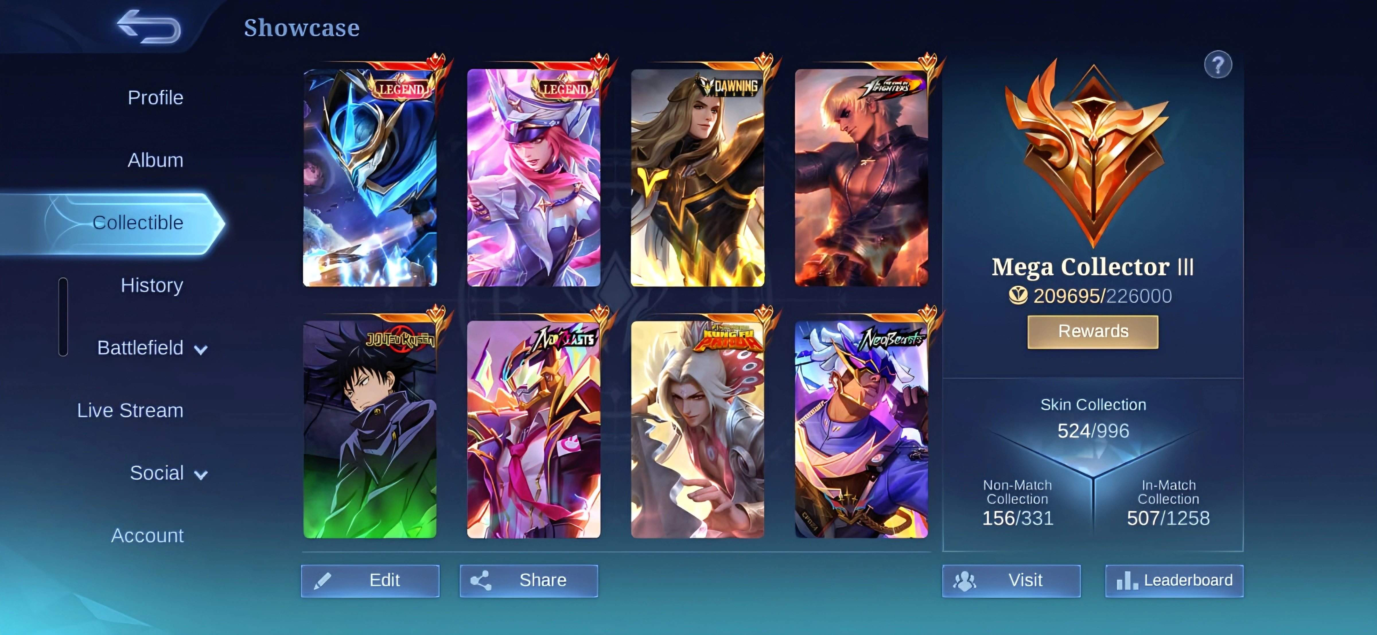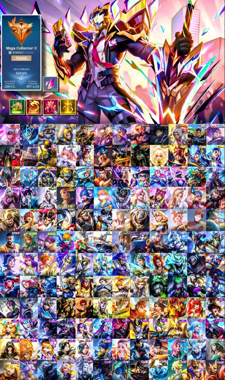 [IOS/ANDROID] CEL LVL 117 | 129 HEROES | 524 SKINS | MEGA 3 | 2 LEGEND FREYA GUSION ⸱ LANCE HERO ⸱ JJK ⸱ NEOBEAST ⸱ KOF ⸱ ALL STARS ⸱ ASPIRANT