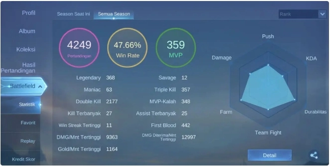 ML416 // Hero109 Skin135 Epic Franco Harley Karrie Legendary