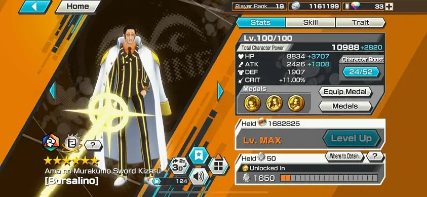 [3381][IOS+ANDROID] 3 EX / Kizaru + Lucci + Roger Dark, solo Fresh support 128%