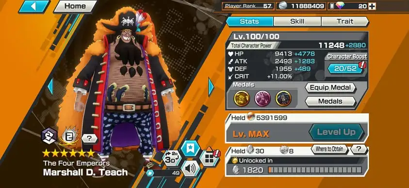 [4192][IOS+ANDROID] 13 EX META / HB 127 / Nusjuro + Blackbeard + Law + Garp + Roger + Light Luffy + Shanks + Kuzan + Sabo + Big Mom + Yamato, Lots of BFs, 170% Support, Lots of Good Color Medals