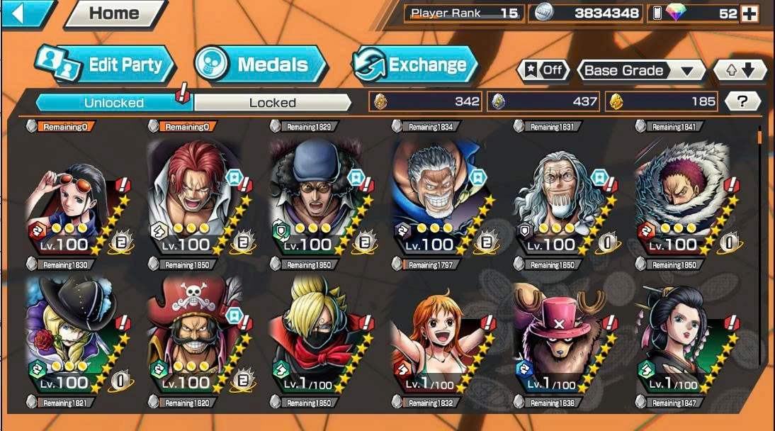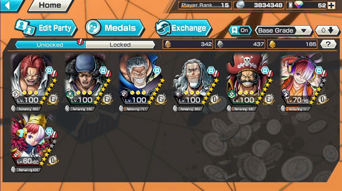 BR615-IOS+Android-4 Ex Meta Max(Garp+Kuzan+Shank v4+Roger)+Good Medal+Support 137%+Rayleigh Max+Katakuri Max+Young Ray Max+Oden v2+Uta Hallowen+Uta Red+Koby+Luffy Black+Upsopp