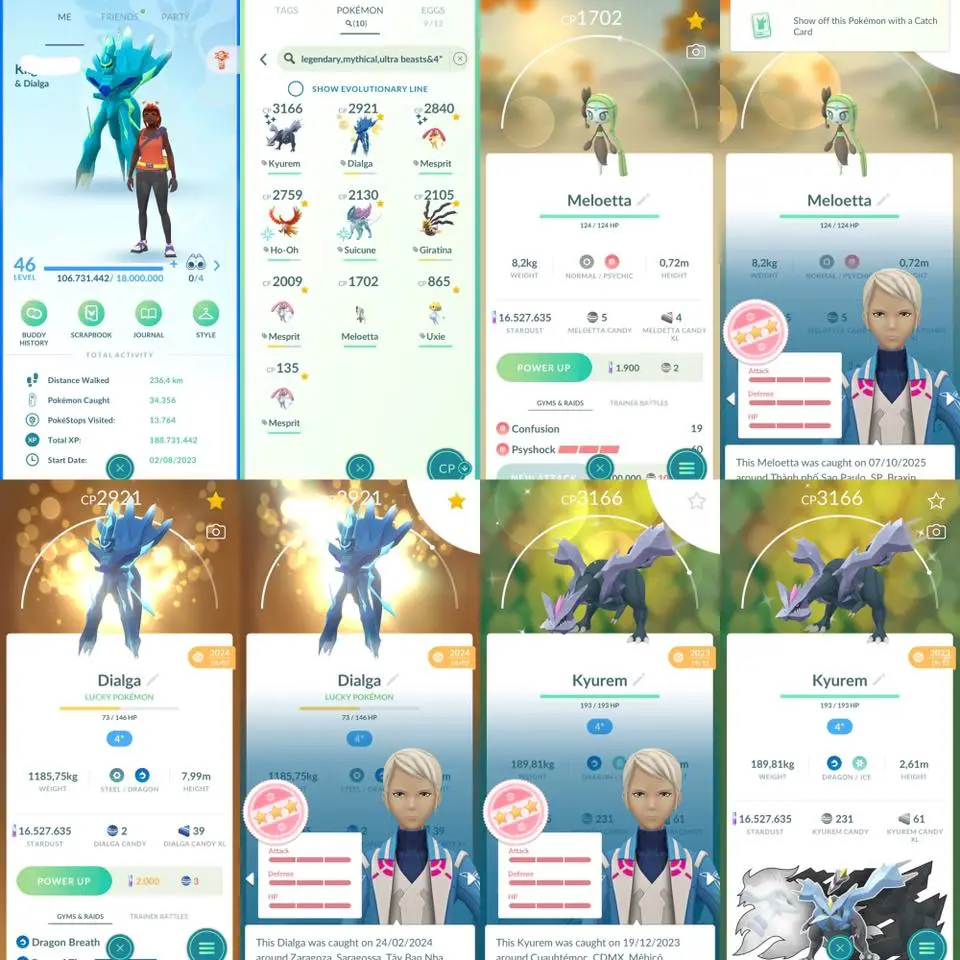High Level 46+ -10 Legend iv100-Shundo Kyurem-Dialga Origin RoT iv100-Meloetta iv100-227 Legend-108 shiny-16mil+ Stardust-10 Special BG-17 Gmax-686 Coins-4 Costume