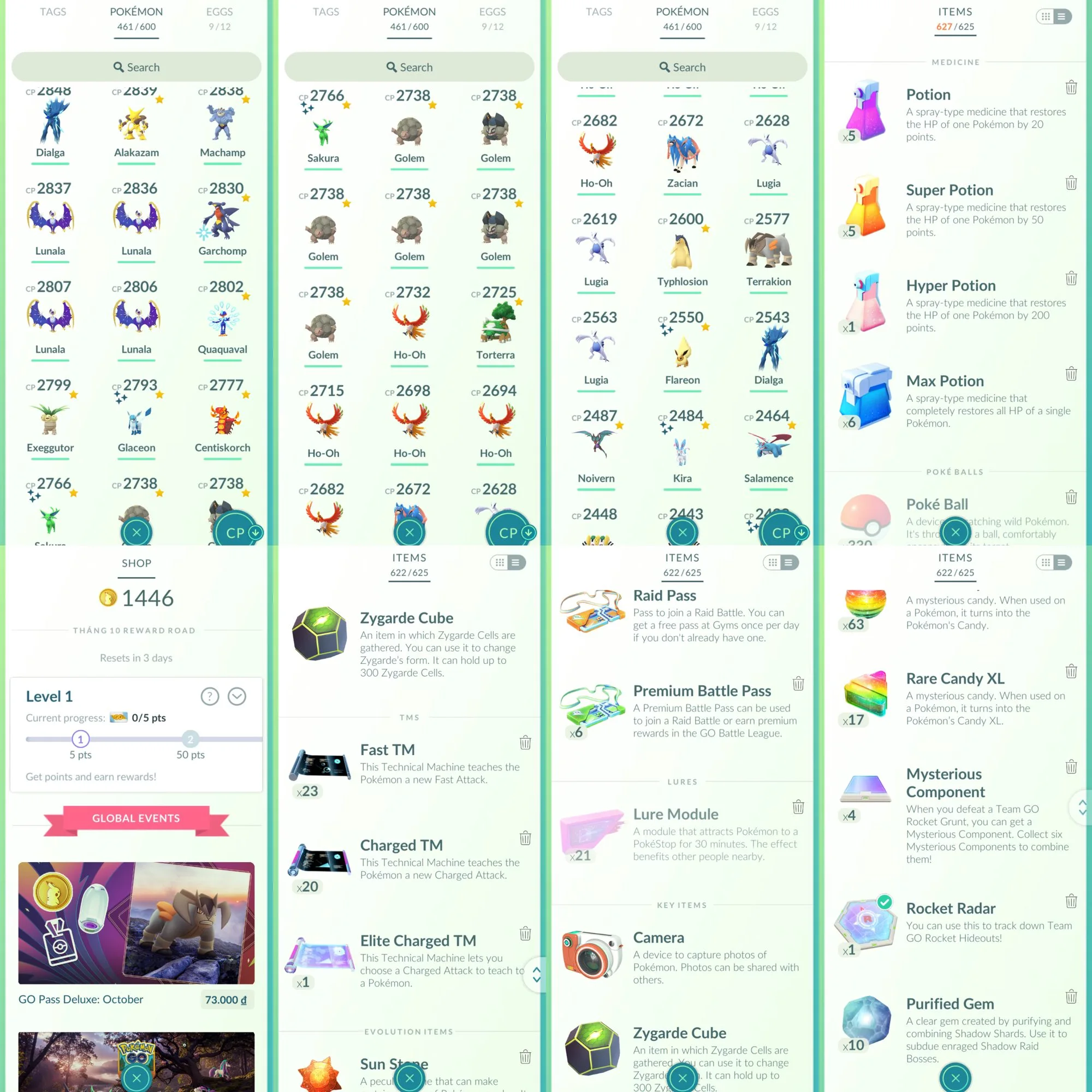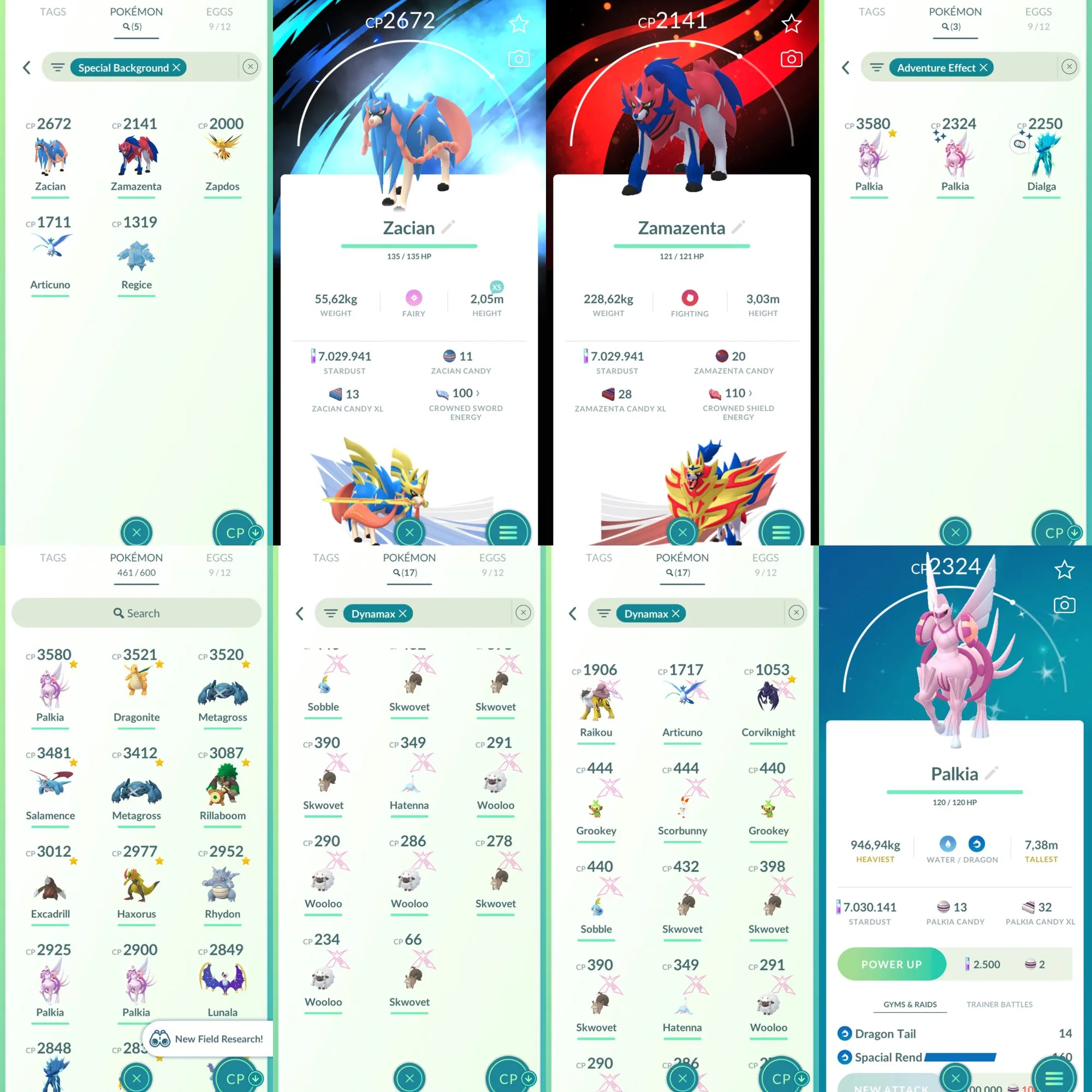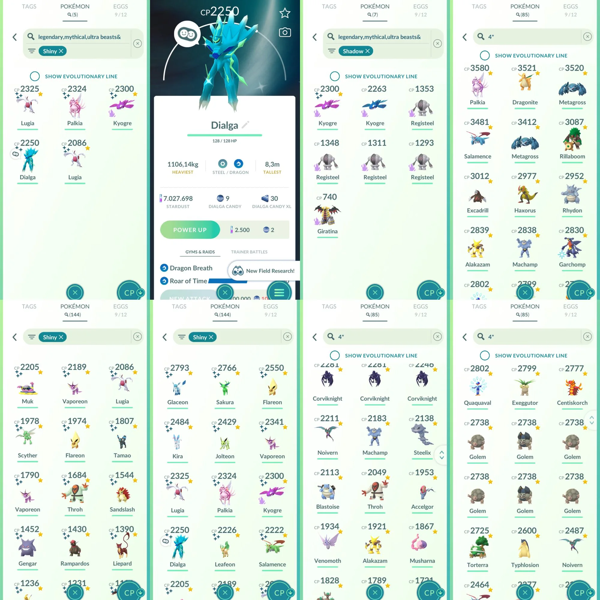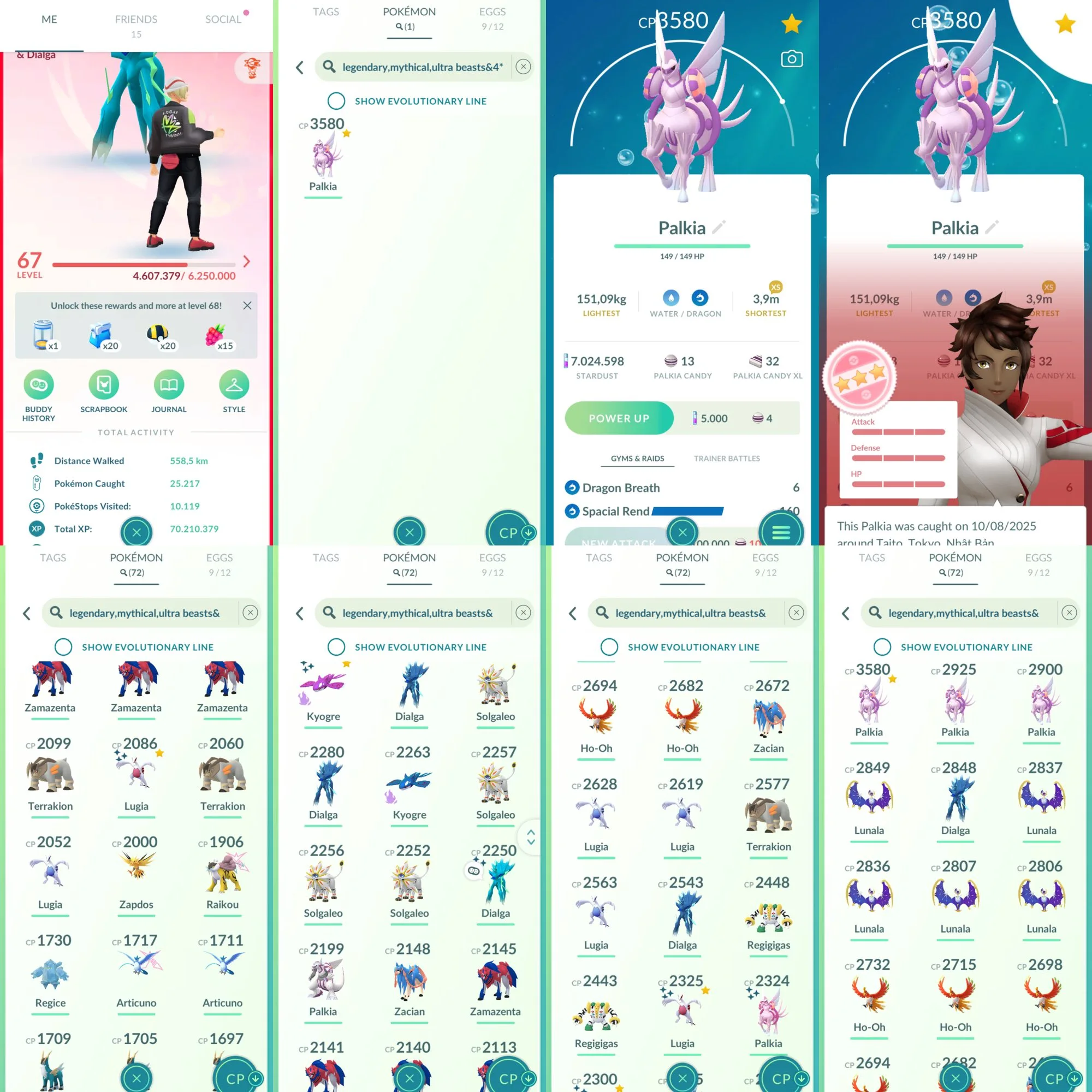 High Level 67+;Palkia Origin iv100; 72 legend-144 shiny-85 Hundo-7 mil+ Stardust-9 Costume;17 Dynamax;Shiny Dialga O RoT